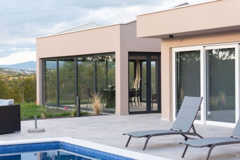Solid modern villa with swimming pool in a great location in Labin area! Total area is 287 sq.m. Land plot is 1400 sq.m. Here, on the ground floor you will find a kitchen with a dining area, seamlessly connected to a living room that extends into a wellness room. The wellness room features a sauna for complete relaxation, and a gym for those who wish to maintain their fitness routine. Additionally, the ground floor houses a bedroom with an en-suite bathroom and an extra toilet. Expansive glass walls span the entire ground floor, offering views towards Labin and bathing the interior in ample sunlight, creating a harmonious blend with the surrounding nature and greenery. A staircase ascends to the first floor, which comprises three more bedrooms, each with its own private bathroom. One of these rooms provides access to a secluded terrace, perfect for ensuring privacy and intimacy. During the hot summer months, the 10x4 meter swimming pool offers a refreshing retreat, and thanks to the heat pump, the pool can also be enjoyed on cooler days. Adjacent to the pool is an essential summer kitchen, with a gross area of 30 square meters, enclosed by glass walls to maintain a connection with nature. Below the pool lies a 30 square meter engine room. For heating and cooling, the house utilizes underfloor heating on the ground floor and fan coil units throughout the rest of the house, the latest in modern climate control systems. These fan coil units are particularly popular for their ability to switch seamlessly between heating and cooling. A beautifully and tastefully adorned garden, complete with a built-in irrigation system and olive trees, guides you to the ground floor of this exquisite property. The property is in the final stages of furnishing, with excellent insulation and top-quality materials used throughout to ensure comfort and durability. Whether you envision this as your future home or an exceptional investment for tourist rentals, this property promises a comfortable lifestyle and a swift return on investment. Ref: RE-U-31114Overall additional expenses borne by the Buyer of real estate in Croatia are around 7% of property cost in total, which includes: property transfer tax (3% of property value), agency/brokerage commission (3%+VAT on commission), advocate fee (cca 1%), notary fee, court registration fee and official certified translation expenses. Agency/brokerage agreement is signed prior to visiting properties.