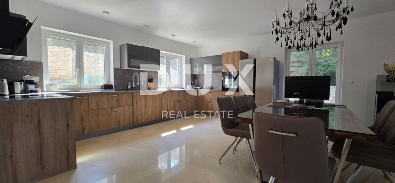 ISTRIA, ROVINJ - Newly built villa with swimming pool and additional apartment, edge of town The picturesque and charming town of Rovinj, located on the western coast of the Istrian peninsula, was once a port and fishing village, and today it is one of the most developed tourist destinations with its unique combination of traditional and modern. It successfully combines the tradition of a fishing village with modern tourist trends, a rich gastronomic offer and a high standard of tourist service. This is precisely why it attracts numerous visitors year after year and has recorded a record 3 million overnight stays during recent seasons. Visitors often return, so why not become the owner of one of the valuable properties in this magical town? In the vicinity of this beautiful town, a charming newly built villa with a swimming pool is for sale, surrounded by beautiful forests and meadows, providing enough privacy and peace for a carefree life! The villa is a detached house with a living area spread over the main apartment and an additional apartment. Apartment 1: The first apartment, or main apartment, has an area of 186.54 m2 and extends across the ground floor and first floor. The ground floor in an open space concept contains a spacious kitchen with dining room and a huge living room for enjoying with the family. Exits to the terrace allow communication with the summer kitchen and swimming pool, which is extremely important in the months when being outside is an everyday activity. In the continuation of the ground floor there is a hallway that leads to the toilet and an internal staircase that connects the ground floor and the first floor. On the first floor there are 3 beautiful bedrooms that are connected by a hallway and a shared bathroom. The master bedroom has its own "walk in" closet of 7.50 m2 and access to a huge terrace with an unobstructed view of nature. In addition to the master bedroom, another bedroom has access to the terrace. Apartment 2: The second apartment, or small apartment, has an area of 50 m2 and also extends over two floors. The apartment has a separate entrance and is ideal as a guest apartment. The ground floor contains a kitchen, living room and dining room, a small toilet and internal stairs leading to the first floor. On the first floor there is a bedroom with its own bathroom. On the 755 m2 plot there is a summer kitchen for outdoor dining. After dining, you can use the beautiful heated swimming pool of 32 m2 (4m x 8m). Such a pool allows swimming in spring and autumn, which can greatly extend the tourist season if the property is purchased for this purpose. Two parking spaces are provided for your tin pets, one of which is covered. The house was built in 2020, is fully equipped and is being sold as such. The heating is underfloor, via a heat pump and via air conditioning. You are 6 kilometers from the first beach, and Rovinj is a 15-minute drive away. Take advantage of the opportunity to become the owner of this idyllic house in a quiet location! Dear clients, the agency commission is charged in accordance with the General Terms and Conditions. www.dux-nekretnine.hr/opci-uvjeti-poslovanja Tina Širol Agent s licencom E- www.dux-istra.com ISTRIA, ROVINJ - Newly built villa with swimming pool and additional apartment, edge of village.