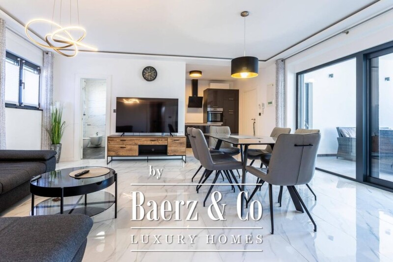 A beautiful house for sale in Srima, consisting of three floors, with separate apartments. Apartment S1 has a total area of 77 m2 and extends through the entire ground floor. It consists of two bedrooms, a bathroom, a kitchen with a connected dining room and living room, and a spacious terrace. The apartment has one parking space in the yard next to the building. The apartment is air-conditioned, has underfloor heating and its own electricity and water meter. It is fully furnished and ready to move into. Apartment S2 has a total area of 95 m2 and extends through the entire first floor. It consists of two bedrooms, a bathroom, a kitchen with a connected dining room and living room, and a spacious terrace. This property also has a studio apartment on the same floor, which has a separate entrance and is located right next to this larger apartment. The property also includes two parking spaces in the yard next to the building. The apartment is air-conditioned, has underfloor heating and its own electricity and water meter. It is fully furnished and ready to move into. The price includes complete furniture. Apartment S3 has a total area of 95 m2 and extends through the entire second floor, and the entire roof terrace of 110 m2 belongs to it, so the total square footage with calculation coefficients is 137.40 m2 + two parking spaces in the courtyard of the building. This beautiful apartment consists of two bedrooms, a bathroom, a kitchen with a connected dining room and living room, and a spacious terrace. This property also has a studio apartment on the same floor with a separate entrance. The apartment is air-conditioned, has underfloor heating, and its own electricity and water meter. It is fully equipped, furnished and ready to move into. For all other information on request.