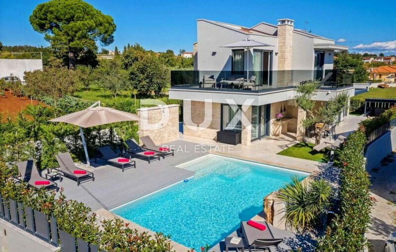 ISTRIA, POREČ - Attractive house with a swimming pool Bathed in a pleasant Mediterranean climate, located in the heart of the western Istrian coast, the ancient town of Poreč and its coastline of preserved natural beauty, landscaped parks, pine and oak groves that reach the sea itself, along which the clear sea, beaches, bays and islands alternate, spreads over an area of 139 km² and consists of 58 settlements. With the identity of an urban coastal city, Poreč is a city of culture, sports, entertainment, a city of tourism and true hospitality. One of the most attractive cities of Croatian tourism that uniquely combines the natural beauty of Istria, a rich cultural and historical heritage and the most modern amenities of a top tourist destination. The harmony of the old town core, which is a cultural monument, with one of the most famous Istrian cultural monuments, the Euphrasian Basilica, which is on the UNESCO World Heritage List, and the most well-maintained and best-equipped tourist settlements on the Adriatic, forms a mosaic of unforgettable experiences. Poreč is also a city that is much more than a summer destination of sun and sea. Poreč is a city tailored to the needs of humans. A city in which there is a constant impulse to improve living conditions and make progress in various spheres greater. A city that is a pleasant, safe and well-maintained place to live where everyone can find their place, a city without surtaxes with high social sensitivity for all generations. Not far from the city of Poreč, there is an attractive house with a swimming pool for sale. It is located in a quiet neighborhood, surrounded by family houses and holiday homes, offering a perfect balance of proximity to the sea and urban amenities. The house, with its architecture, fits into the settlement and landscape in terms of form and color, creating a synergy of the natural environment and modern design, and the quality of construction guarantees long-term satisfaction and quality of living. It is defined as one residential unit whose area is distributed over two tastefully decorated floors of a functional floor plan. The ground floor consists of an open-concept space that unites the kitchen, dining room and living room with access to a covered terrace that contains a summer kitchen, bedrooms with private bathrooms, a guest toilet, a utility room and technical rooms. The first floor consists of two bedrooms with private bathrooms and exits to the terrace. The yard is landscaped and fenced, and the perfect harmony is complemented by a swimming pool with a sunbathing area and a mobile auxiliary facility in the function of a wellness area with a sauna, hot tub and shower. The excellent location and the spatial organization of the interior and exterior of this property provide an opportunity for a comfortable family life or an investment investment in a tourist rental business. Dear clients, the agency commission is charged in accordance with the General Business Conditions: www.dux-nekretnine.hr/opci-uvjeti-poslovanja Iva Zajc Agent s licencom E- www.dux-istra.com ISTRIA, POREČ - Attractive house with swimming pool.