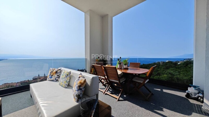 Spacious and luxurious apartment with a panoramic view of the sea in Opatija. A unique and luxuriously furnished apartment of 227 m2 is for sale in an excellent location in Opatija, with an unobstructed panoramic view of the sea from every room. This impressive apartment extends over two floors and consists of: Lower floor: * A spacious living room with an exit to the loggia with a breathtaking view of the sea. * Fully equipped kitchen with dining room, ideal for spending time with family and friends. * Bedrooms with private bathrooms, providing privacy and comfort. * Additional toilet for guests. * Spacious pantries for additional storage space. * a large terrace for socializing with a barbecue *Upper floor (gallery): * Two spacious bedrooms with en-suite bathrooms, each with an enchanting view of the sea. * Uncovered terraces with a panoramic view of the Kvarner Bay, ideal for enjoying the sun and morning coffee. * Wardrobes for storing clothes and shoes. The apartment is completely decorated with top quality materials and equipped with the most modern equipment, which makes it an ideal home for the most demanding buyers. *Additional benefits: * Excellent location near all facilities. * Peaceful and quiet environment. This exceptional apartment represents a unique opportunity to live in luxury and comfort, with a beautiful view of the sea.