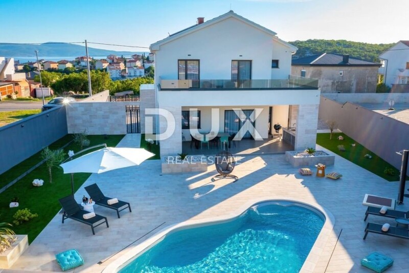 NOVI VINODOLSKI - Modern villa with a swimming pool near the sea Novi Vinodolski is one of the first tourist places in the coastal area. Thanks to the mild Mediterranean climate, clean sea and air, Novi Vinodolski is always gladly visited as a city rich in culture and history. The highway takes you to Rijeka in half an hour's drive, but also to the Rijeka-Zagreb highway, which ensures good traffic connections. This modern villa with an area of 302 m2 with a swimming pool is located precisely in that charming town. The villa was completely renovated in 2022, using only quality materials. It is equipped with extremely high-quality furniture and appliances, and an auxiliary building for enjoyment and socializing was built next to it. The villa is spread over two floors. It contains four bedrooms, each with its own bathroom, living room, kitchen, shared toilet, a beautiful spacious terrace and a balcony. Heating is by means of solar panels, which greatly reduces costs. The yard is decorated with a beautiful heated pool of 30 m2 for enjoying in the summer months, an outdoor kitchen and an auxiliary facility with a jacuzzi, sauna, billiards, darts and a bathroom with a toilet. For your cars, 4 parking spaces are provided next to the villa itself. Everything you need for a quality vacation is in one place, and the most important thing is the proximity to the sea, the center and all other amenities. This beautiful villa can serve as an escape from everyday life or as a good investment. In both cases, it will certainly justify your expectations. Dear clients, the agency commission is charged in accordance with the General Business Conditions www.dux-nekretnine.hr/opci-uvjeti-poslovanja Tina Širol Agent s licencom E- www.dux-istra.com NOVI VINODOLSKI - Modern villa with pool near the sea.