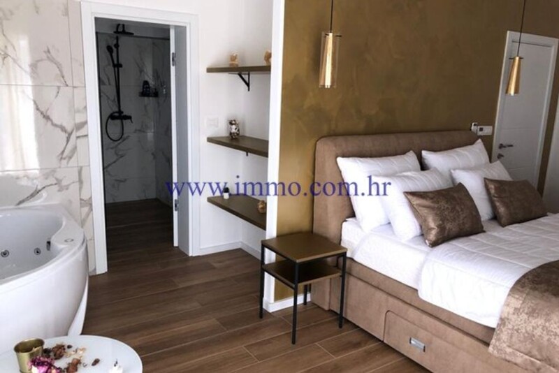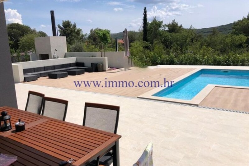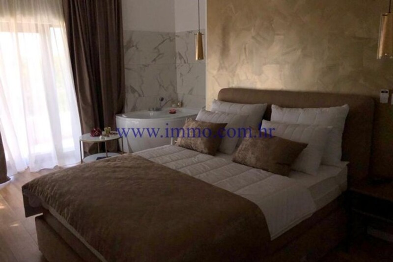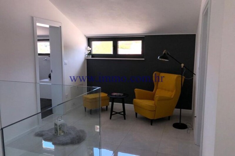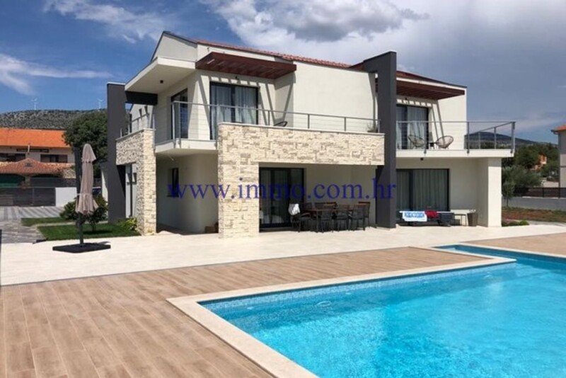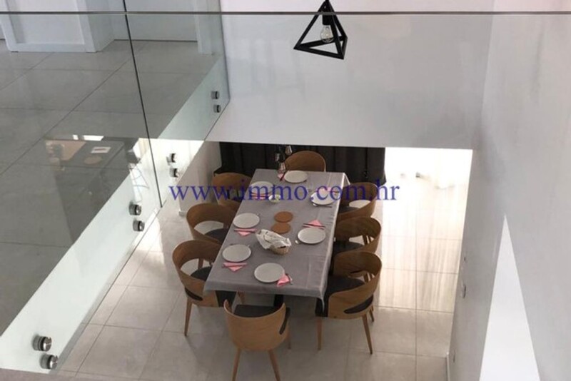 A beautiful new two-storey villa for sale, located in a picturesque village near Šibenik. The villa has an area of 200 m2, is located on a plot of 1870 m2 and has a beautiful open view of the surroundings and untouched nature. The villa was built in 2020, luxuriously decorated, furnished and equipped. The ground floor of the villa has a spacious living room with kitchen and dining area, bedroom, bathroom, guest toilet, technical room with laundry, sauna and garage of 35 m2. Internal stairs lead to the first floor, where there is an entrance hall and three bedrooms with bathrooms. All bedrooms have a balcony with a beautiful view of the environment. In front of the villa there is a spacious terrace with pool, sun deck and barbecue. The villa is surrounded by a landscaped garden with parking for several cars. Infrastructure: paved access road, electricity, water, septic tank. Additional information about the facility, its exact location and sightseeing is possible after signing a brokerage agreement with the agency that is in accordance with the Data Protection Act and the Real Estate Brokerage Act.