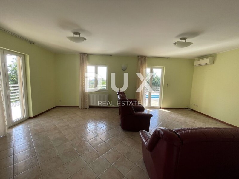 ISTRIA, ROVINJ VILLAGE - Beautiful house with open sea view On the road Rovinj - Kanfanar, only 5-6 km away from Rovinj, there is the village Rovinjsko Selo, whose hills offer a beautiful view of the city of Rovinj and the Rovinj archipelago. Today, the village is only by name because it is constantly evolving and is becoming a suburb of Rovinj. In the past, about 400 houses have been built on about one square kilometer. The older ones are grouped in several locations (Rudelići, Čupići, Morovi, Vičani - bearing the names of the families who lived in them decades ago) and which are a beautiful example of rural architecture from the 19th and early 20th century, today almost all adapted. The old houses are beautiful single-storey or single-storey stone buildings, with ballads and cisterns, and a yard surrounded by a masonry fence within which you can find some bread ovens that are a hundred years old. Newly built houses are incorporated within the old cores or on the outskirts of the settlement. They are connected by alleys, on the left and right side of the main village road, which continue their way into the fields surrounded by dry stone walls. Precisely in Rovinjsko selo is a beautiful house with a direct view of the sea on one side and the Istrian hills on the other. The house consists of two separate apartments, the first apartment is on the ground floor and the second apartment is located on the first floor. The total size of the house is 258 m2 located on as many as 1203 m2 beautifully landscaped garden. Entering the ground floor of the house we enter the first apartment. The lower apartment consists of a living room with kitchen, one toilet, bathroom, two bedrooms, storage room and wardrobe. The rooms have parquet that is healthy and preserved, and through the apartment on the ground floor it is possible to go to the terrace with a beautiful sea view. Heating is via air conditioning, and in addition to air conditioning throughout the house is central heating. In the living room there is also a stove with which you can heat with wood or pellets. Outside the house there is a staircase leading to the first floor where the second apartment is located. The upper apartment consists of a kitchen and dining room, living room, storage room, toilet, bathroom and four bedrooms, one of which has access to the terrace. The upper terrace offers an unforgettable view of the sea and the Istrian hills. Air conditioners and central heating are installed throughout the house, and the house has all the necessary infrastructure and additional systems such as an alarm system with sensors and the Internet. The garden is arranged and regularly maintained. Behind the house is a 12x4 meter pool with Roman stairs and a mosaic built in 2018. In the rest of the yard there is a garden with several types of plants such as palm trees, magnolias, pomegranates and olive trees, then a summer kitchen (tavern) with a fireplace and its own private toilet and a small house with tools that can be converted into another species. object. From the side of the pool, it can be lowered into the basement, which is decorated and has its own air conditioning, and can be used to store various inverters from the pool and garden maintenance devices. In addition to the summer kitchen, there is a covered parking space for two cars, while at least two more cars can be parked in the rest of the yard at the entrance to the yard. The house currently has its own septic tank, but there is also a sewer that only needs to be connected to the septic tank. There is automatic irrigation in the whole yard so you don't have to worry about watering the garden and plants, and also on one side of the yard there is a water connection to which it is possible to connect a hose and water the plants by hand. Rovinj village is located near the town of Rovinj and is 6 km from the sea. Rovinj has all the main facilities needed for a comfortable life of every family. Apart from living, the house can also be used for rent during the season, given the popularity of Rovinj and the Rovinj village. Dear clients, agency commission is charged in accordance with the General Terms and Conditions: www.dux-nekretnine.hr/opci-uvjeti-poslovanja Loren Kečan Agent s licencom E- www.dux-istra.com ISTRIA, ROVINJ VILLAGE - Beautiful house with open sea view.