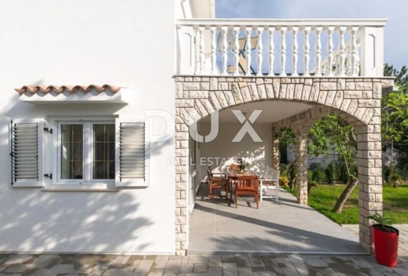 CRIKVENICA, JADRANOVO - nice holiday house 92m2 in the center of Jadranovo We are selling a beautiful holiday home of 92 m², which was renovated in 2022. On the upper floor of the house there are 2 bedrooms, a beautiful bathroom and a large terrace and balcony of 20 m². On the ground floor there is a large living room with 2 sofa beds. From the kitchen you come directly to the 20 m² terrace and private garden. In the outdoor area there is an outdoor shower and a brick grill. The yard covers a total of 350m2. The living area of the house is 92m2. The house has a total of 4 terraces/balconies with 40m2. In addition, there is a garage of 18 m2. Up to 5 cars can be parked in the private parking lot. A new sewage system was built, and electricity and water installations were renovated. The house is located in an excellent location, close to all important facilities, only 300 m away from the sea and the first beach. It is ideal for living in a peaceful environment, and as an investment for tourist purposes. The house is semi-detached, with a well-decorated facade, garden, and also well-renovated with a beautiful interior. Definitely a house worth looking at and buying. For all other information, contact the agent. Dear clients, the agency commission is charged in accordance with the General Terms and Conditions. www.dux-nekretnine.hr/opci-uvjeti-poslovanja Višnja Torić Agent pripravnik E- www.dux-nekretnine.hr CRIKVENICA, JADRANOVO - nice holiday house 92m2.