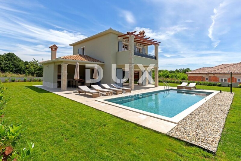 ISTRIA, LABIN - Immaculate house with swimming pool On the southeastern coast of Istria, where green hills meet the sea, where nature and heritage meet, there are two towns of similar size but with different but mutually complementary characters - Labin and Rabac. The picturesque town of Labin rises on a hill 320 meters high, only five kilometers from the white pebble beaches in Rabac. Intertwined with rich history and mining that marked this region, Labin, which was declared an independent republic for a short time, is today a fascinating city of contradictions; old and new, history and present, tourism and art. Near the town of Labin, an immaculate house with a swimming pool is for sale. It is located in a gentle settlement, surrounded by nature, family houses and holiday homes, offering a perfect balance of rural surroundings and proximity to urban amenities. In addition to the location that provides complete comfort and peace, the property is also distinguished by the quality of construction, which guarantees long-term satisfaction and quality of housing. It was conceived as one residential unit that extends over two floors with an airy, natural light-filled interior that exudes elegance. The ground floor consists of an open concept space that unites the living room, dining room and kitchen with access to a covered terrace containing a summer kitchen. The floor plan of the ground floor is complemented by a bedroom, a bathroom and a room for equipment/storage. The first floor consists of two bedrooms with their own bathrooms and access to a terrace covered with a pergola. The yard is landscaped and horticulturally decorated, and the elegantly integrated swimming pool of 40 m² with a sun deck provides complete harmony. The excellent location and the spatial organization of the interior and exterior of this property provide an opportunity for a comfortable family life or an investment investment in a tourist rental business. The seller of the property in question is a legal entity and VAT is included in the stated price. Dear clients, the agency commission is charged in accordance with the General Business Conditions: www.dux-nekretnine.hr/opci-uvjeti-poslovanja Iva Zajc Agent s licencom E- www.dux-istra.com ISTRIA, LABIN - Immaculate house with pool.