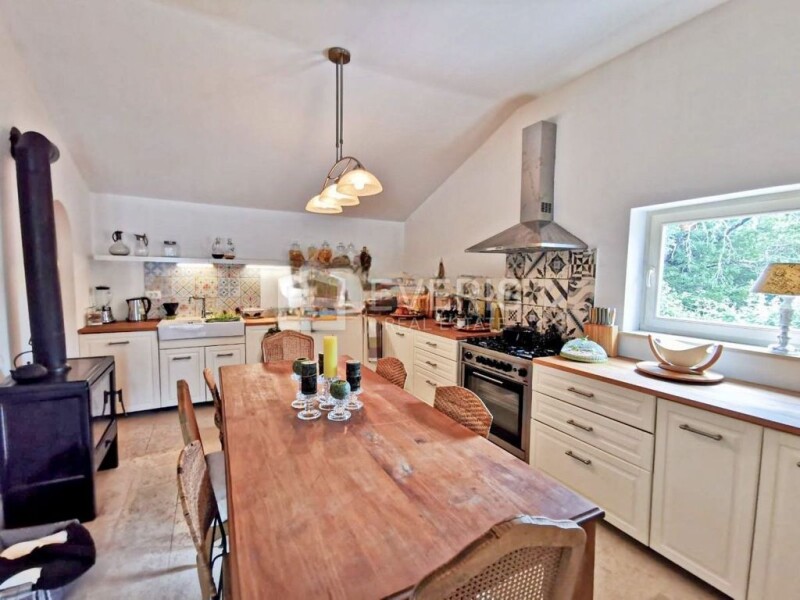 Istria, Labin - Sveta Nedjelja A stone house with a swimming pool located in a small place near Labin on a plot of 1.947 m2 surrounded by greenery and fruit trees. The renovated and upgraded stone house consists of: - kitchen with dining room and large living room with access to a covered terrace - three bedrooms + gallery(36m2) that can be converted into an additional bedroom or a room for hanging out - bathroom. The house also has a large storage room with an engine room, a 36 m2 swimming pool, an outdoor shower and a 20 m2 garage. Heating and cooling: The water is heated via solar panels on the roof and heats up with an electric boiler in days without sun. The house has two air conditioners, one in the kitchen and dining area and the other in the living room The heating is via the fireplace of wood in the living room. Surroundings • Nice view • Close to nature • Very sunny Position • south • west Near the property: Sea 13 km Shop 3 km Post office 3 km Elementary school 1 km For more additional information, feel free to contact us. Želimir Bagić Agent s licencom E- Istria, Labin, stone house in a quiet location.