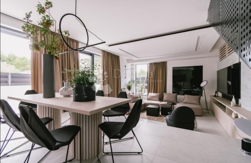 Kao sta slike govore tisuću riječi..uzivo je očaravajuća! Prodajemo novoizgradjenu i moderno uredjenu Villu na moru! Projektirana i dizajnirana od strane mladog arhitektonskog studia koji je ispostovao svaki detalj kako bi bivanje u ovakvom domu bio savrsen. Sama Villa sastoji s od prizemlja i kata. U prizemlju je smjestena 1 spavaca soba sa vlastitom kupaonom, prostrani dnevni boravak sa kuhinjom i blagavaonom u open-space varijanti. Iz dnevnog boravka je izlaz na sunčalište s vanjskim bazenom i lijepo uredjeno dvorište. Unutarnjim stubištem se ide na kat gdje se nalaze jos 3 spavaće sobe, 2 kupaone te dvije natkrivene terase. Villa se prodaje namjestena. Industrijski dizajn, mnoštvo zanimljivih detalja, kvalitetna izvedba, dizajnerski komadi namjestaja čine ovu nekretninu pravim malim čudom u ponudi nekretnina! Nalazi se na mirnoj lokaciji sa odličnom mikrolokacijom..u blizini trgovina, restorana i svega 3 min do plaze. Takodjer, osim blizine mora, bitno je naglasiti da se nekretnina nalazi na relativno maloj udaljenosti od zračnih luka Kaštela i Zadar te autoputa. Odlična nekretnina bilo da zelite u njoj boraviti tijekom cijele godine ili je koristiti kao investiciju. Dokumentacija uredna, Č.V. Za više informacija ili ogled, kontaktirajte: SANDRA SAN 092/3222-331 Dogma nekretnine.
