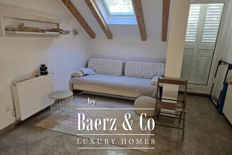 An attractive house located right on the beach, with an area of 196 m² on a plot of 400 m². It consists of a ground floor and an upper floor. The ground floor features an apartment with a kitchen, dining area, living room, two bedrooms, a bathroom, covering an area of 50 m², as well as a covered terrace of 17 m². The upper floor has an identical apartment with a separate entrance from the side of the house and a terrace of 12 m². The house also has a basement area of 12 m² and a garage of 15 m². In front of the house, there is a spacious garden full of Mediterranean plants, a covered lounge area, a barbecue, a summer kitchen and outdoor showers. Parking in the yard is available for five cars, and there is also a boat dock for boat up to 12 meters in length. From all parts of the house and from all the terraces, there is a beautiful open view of the sea. It is ideal for personal use but also as an investment for tourism purposes, considering the two completely separate and fully equipped apartments. It is located in the beautiful Mediterranean town of Grebaštica, just 15 km from the city of Šibenik. More information available upon request.