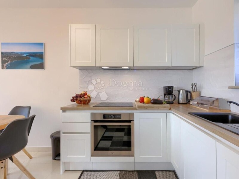 The villa covers 122 m² of living space spread over three floors. On the ground floor there is a spacious kitchen with a dining room, a comfortable living room, a bathroom and a covered terrace ideal for relaxing with morning coffee or evening socializing. Upstairs there are two airy bedrooms, each with its own bathroom, next to a spacious hallway that leads to an uncovered terrace with a view of the sea. In the attic there is a third bedroom with a private bathroom, providing an additional level of privacy. There is a 32 m² swimming pool in the garden, perfect for refreshing yourself during warm summer days. The lawn with an automatic irrigation system is kept in perfect condition, and the yard offers enough space for recreation and relaxation. Terraces overlooking the sea contribute to an atmosphere of complete peace and privacy. Each room is equipped with split air conditioning systems, ensuring a comfortable temperature throughout the year, while underfloor heating is installed for extra comfort in the colder months. The villa is equipped with quality and modern furniture, ready for immediate occupancy or further rental. The villa has a long tradition of renting and excellent occupancy during the tourist season, which makes it a profitable investment and already established business venture. Do not miss the opportunity to become the owner of this luxury oasis and turn this dream of living by the sea into reality!.