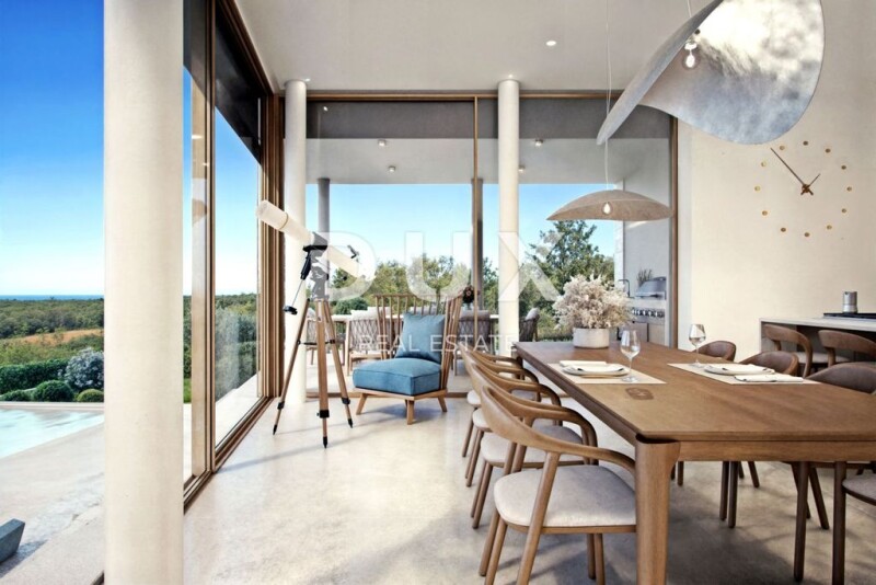 ISTRIA, POREČ - An impeccable villa on the edge of the settlement Bathed in a pleasant Mediterranean climate, located in the heart of the western Istrian coast, the ancient town of Poreč and its coastline of preserved natural beauty, landscaped parks, pine and oak groves that reach the sea itself, along which the clear sea, beaches, bays and islands alternate, spreads over an area of 139 km² and consists of 58 settlements. With the identity of an urban coastal city, Poreč is a city of culture, sports, entertainment, a city of tourism and true hospitality. One of the most attractive cities of Croatian tourism that uniquely combines the natural beauty of Istria, a rich cultural and historical heritage and the most modern amenities of a top tourist destination. The harmony of the old town core, which is a cultural monument, with one of the most famous Istrian cultural monuments, the Euphrasian Basilica, which is on the UNESCO World Heritage List, and the most well-maintained and best-equipped tourist settlements on the Adriatic, forms a mosaic of unforgettable experiences. Poreč is also a city that is much more than a summer destination of sun and sea. Poreč is a city tailored to the needs of people. A city in which there is a constant impulse to improve living conditions and make progress in various spheres greater. A city that is a pleasant, safe and well-maintained place to live where everyone can find their place, a city without surtaxes with high social sensitivity for all generations. In the vicinity of the city of Poreč, offering a perfect balance of rural surroundings and proximity to dynamic Istrian cities with a range of amenities, an impeccable villa on the edge of the settlement with a panoramic view of the sea and the surrounding area is for sale. In addition to an exceptional location that provides complete comfort, the property is also characterized by the quality of construction that guarantees long-term satisfaction and quality of living. The villa, a modern breakthrough in timeless architecture with an emphasis on functionality and aesthetics, fits into the settlement and landscape in terms of form and color, is distributed over three floors of a functional floor plan, and the living area offers a harmonious living environment bathed in natural light that exudes sophistication and comfort. The basement consists of a wellness area with a sauna and bathroom, a wine cellar and a storage room. The ground floor consists of an open-concept space that unites the kitchen, dining room and living room with access to a covered terrace that contains a summer kitchen, two bedrooms with en-suite bathrooms, a hall with a wardrobe, a guest toilet, a laundry room, a storage room and technical rooms. The first floor consists of two bedrooms with en-suite bathrooms and a spacious terrace. The fenced garden is abundant with greenery, and the perfect harmony of the ambient and horticulturally decorated garden is rounded off by an overflowing pool with a sunbathing area. The exceptional location and spatial organization of the interior and exterior of this property provide an opportunity for a comfortable family life or an investment in a tourist rental business. The stated price of the property refers to the final level of completion without furniture, which allows for the final arrangement according to your own wishes and preferences. The seller of the property in question is a legal entity. Dear clients, the agency commission is charged in accordance with the General Terms and Conditions: www.dux-nekretnine.hr/opci-uvjeti-poslovanja Iva Zajc Agent s licencom E- www.dux-istra.com ISTRIA, POREČ - Impeccable villa on the edge of the village.