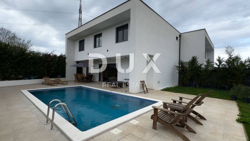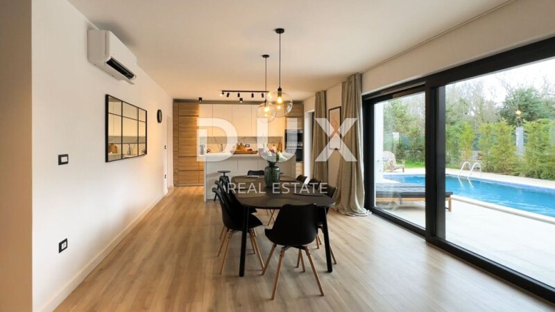ISTRIA,ROVINJ - Modern new building with swimming pool Enjoy comfort, privacy and natural surroundings in this exceptional new building, located only 7 km from the magical Rovinj. This property is perfect for those looking for a peaceful retreat by the sea, but also an excellent investment for tourist rental. Contemporary design and functional layout This beautiful house extends over 170 m² and offers a spacious open space living room, a modern kitchen with dining area and practical storage on the ground floor. An additional bonus is the bathroom/laundry room, perfect for everyday comfort. Upstairs there are three spacious bedrooms, each with its own private bathroom, providing maximum privacy and luxury. An oasis of peace with a private pool In addition to the elegant interior, this property also offers a spacious 390 m² yard, ideal for enjoying the outdoors. The pool invites you to refresh yourself during warm summer days, while the terrace provides the perfect place for morning coffee or evening gatherings with family and friends. Additional comfort and security The house is equipped with electric roller shutters on all windows, which ensures easy control of light and privacy, while mosquito nets are installed on all openings so that you can enjoy fresh air without annoying insects. Air conditioners are located in all rooms. Close to nature and an active lifestyle Nature and sports lovers will be delighted with the nearby cycling and hiking trail. Enjoy a bike ride or a leisurely walk through untouched nature, while at the same time being close to all the amenities offered by one of the most beautiful towns in Istria. Perfect location and investment opportunity Rovinj is known as one of the most sought-after tourist destinations in Croatia, which makes this property an excellent investment for tourist rental. Whether you are looking for a new home for your family or a profitable rental property, this house offers everything you need. Dear clients, the agency commission is charged in accordance with the General Terms and Conditions www.dux-nekretnine.hr/opci-uvjeti-poslovanja Stefani Kapel Agent s licencom E- www.dux-istra.com ISTRIA, ROVINJ - Modern new building with swimming pool.