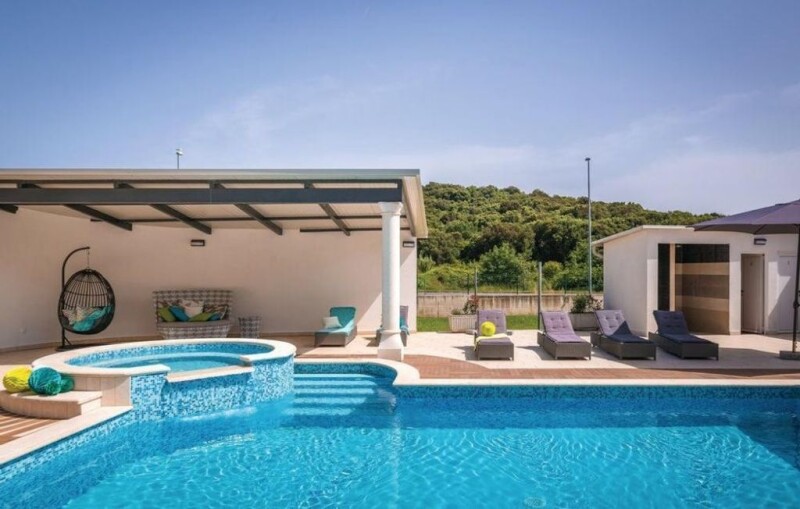 Luxuriously decorated holiday home located in Nova Veruda district of Pula with swimming pool. Perfect condition and modern adaptation of 2018. Total area is 565 sq.m. Land plot is 1600 sq.m. On the ground floor there are two bedrooms, each with its own bathroom, television and air conditioning, also, on the ground floor there is a large social hall with fitness / gym, jacuzzi, sauna, showers, wc, laundry, machine and dryer, billiard room, table tennis and table football which opens onto a large terrace with a swimming pool, ski jumps, BBQ, slide, seesaws, deck chairs and umbrellas, and a volleyball court. On the first floor there are 5 hotel rooms, each with its own bathroom, television and air conditioning. On the second floor there is an apartment with a large living room, kitchen and two bedrooms, bathroom and terrace. In the attic there are 2 rooms, one with access to the balcony and the other with private bathroom. The house has a bio septic tank, central heating on city gas, new air conditioning, aluminum blinds on remote control, pvc carpentry - imitation wood, boiler room, 3 pantries, tavern/konoba for guest receptions. The property benefits its own water well, irrigation, video surveillance, alarm, safe and 6 garage spaces. Ref: RE-U-3747Overall additional expenses borne by the Buyer of real estate in Croatia are around 7% of property cost in total, which includes: property transfer tax (3% of property value), agency/brokerage commission (3%+VAT on commission), advocate fee (cca 1%), notary fee, court registration fee and official certified translation expenses. Agency/brokerage agreement is signed prior to visiting properties.