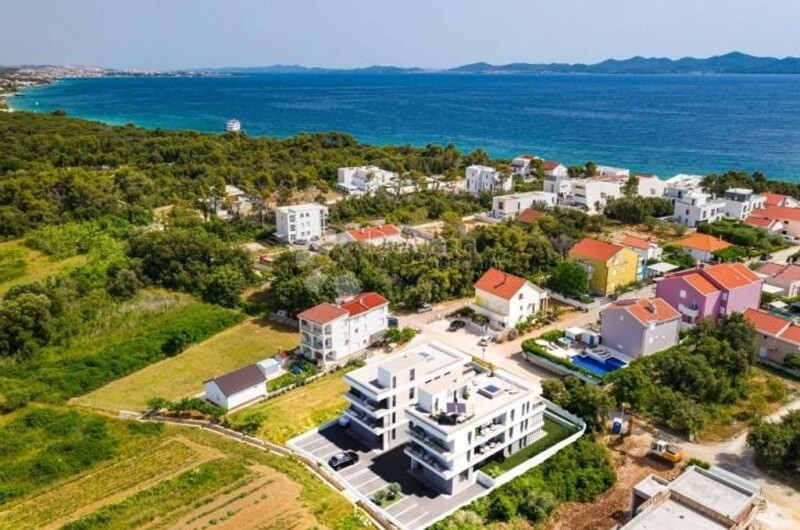 PETRČANE - LUXURY PENTHOUSE S3 ON THE SECOND FLOOR WITH ROOF TERRACE The building is modernly designed with an optimal room layout to ensure the highest level of comfort. It is located in a peaceful area just 250 meters from the sea. The building will have a total of three residential units, one on each floor. Penthouse S3 is located on the second floor and consists of an entrance hallway, kitchen and dining area, living room, three bedrooms, two bathrooms, and a toilet. The total interior living area is 99m². The apartment features a large terrace of 28.60m² accessible from the living room, a terrace of 9.73m² accessible from two bedrooms, and a 16.31m² terrace accessible from the third bedroom. At the top of the building, there is a spacious roof terrace of 124.15m² with a sea view. The staircase on the second floor leading to the roof terrace belongs to the apartment, and the roof terrace is also accessible by elevator. Additionally, there are two parking spaces for your vehicles. The apartment is bright and airy. The building is constructed with reinforced concrete, using the highest quality materials, and features: - Schindler elevator (from the ground floor to the roof terrace) - Heating and cooling via Ariston heat pumps - Flooring: parquet in the bedrooms, and first-class ceramics in the rest of the apartment - Burglar-proof and fire-proof entrance doors - Triple-layer PVC joinery by Kommerling with electric shutters and insect screens - Sanitary ware by Villeroy & Boch and Hansgrohe, and built-in cisterns by Geberit and Tece - High interior doors from floor to ceiling - Intercom Expected completion date: 01/2025. Petrčane - A Paradise near Zadar, easily accessible and ideal for a tourist vacation! A picturesque village located just 12 km northwest of the city of Zadar, offering an irresistible combination of urban amenities and untouched nature. Only a 10-minute drive from Zadar provides quick access to all the city attractions and amenities. Petrčane is well-connected, with the highway 35 km away and Zadar Airport 22 km away. Financing available for EU citizens. The number one agency in Croatia for over 23 years. Don't miss the opportunity to become the new owner of this beautiful apartment! Your new luxury residence is waiting for you! For all additional information and to arrange a viewing, feel free to contact me at +385919077396. Contact: Vedrana Bašić: +385919077396 E-mail: vedrana.basic@dogma-nekretnine.com.