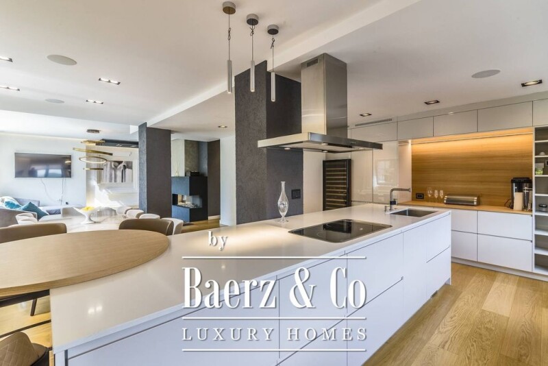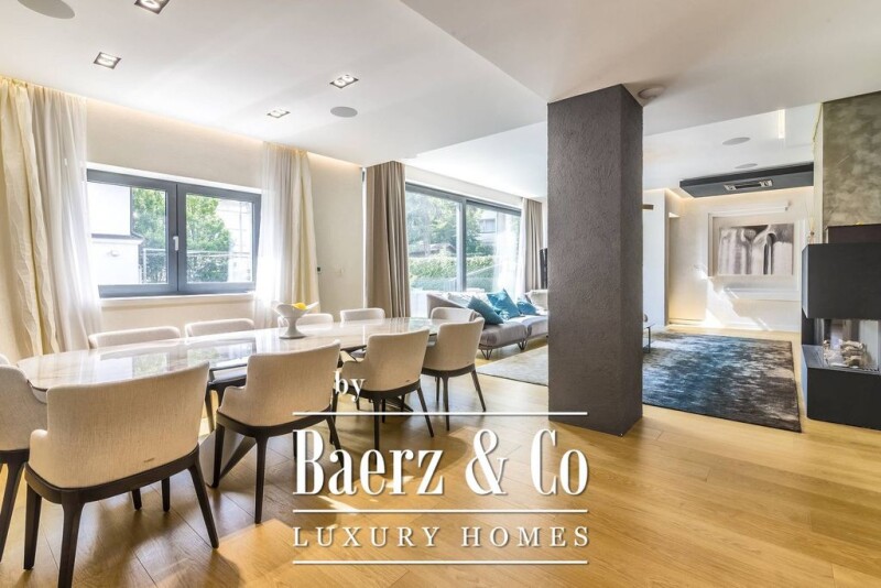 Mlinovi, luxury modern villa with a closed area of 500 m2 with a beautiful yard and garden of 430 m2. Located at the very beginning of Mlinovi street, near the park, school, not far from the city center. Built on three floors. Basement: professional kitchen, entertainment area, sauna, wine cellar, bathroom, toilet, laundry room and pantry. Ground floor: large entrance hall, spacious kitchen with dining room and living room, study room, toilet, bathroom and bedroom. Floor: hallway, wardrobe, 2 bedrooms, 2 bathrooms, study room, fitness area and pantry. Heated garage and parking for 4 vehicles in the yard. Luxuriously decorated, designer equipped and furnished. Air-conditioned all rooms, heating floor, aluminum exterior joinery with electric lift shutters, integrated floor vacuum cleaner. Smart Home System has the ability to control heating, cooling and electric shutters via a mobile application. Oriented to north, west, east and south. On the courtyard terrace with underfloor heating there is a barbecue, a baking lid and an outdoor jacuzzi. Ideal for gathering in the open atmosphere of the garden with beautiful horticulture. Any additional information on request.