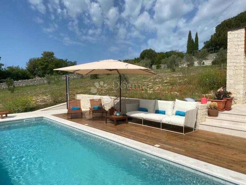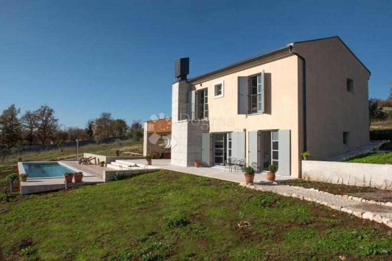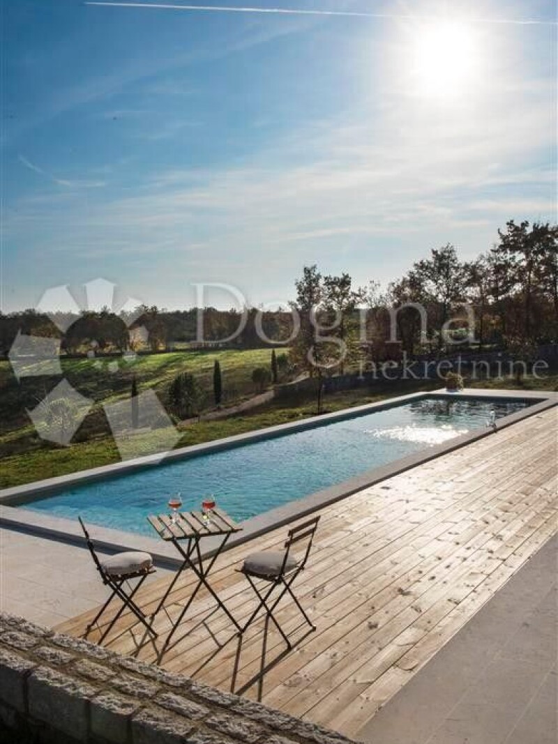 Welcome to the oasis of Istrian style, where tradition meets modernity on a stunning estate with a breathtaking house and pool. This incredible property spans an impressive 34,315 m2, with a 200m2 house meticulously designed to provide you with the pinnacle of living perfection. In the ground floor of this house, you'll enjoy a laundry room, sauna, and guest WC, while the open-space living room with kitchen and dining area will be the heart of your home. The bedroom with its own bathroom will provide you with peaceful sleep. Upstairs, there are two spacious bedrooms, each with its own bathroom, and a study room. One of the bedrooms has access to a terrace, offering you a beautiful view. Heating and cooling are provided through air conditioning units, while on the ground floor, there is also a fireplace that will provide warmth and coziness. An energy certificate of category A+ guarantees efficiency and environmental awareness. The oasis extends outside the house, where you'll find a summer terrace with a fireplace and a spacious sunbathing area next to the 50 m2 pool. The pool is equipped with state-of-the-art technology for saltwater, electrolysis, and heating, and it has ambient lighting that makes it magical at night. Additionally, there are around 50 olive trees on the estate, yielding about 500 kg of fruit, providing you with your own supply of quality olive oil, as well as beautiful Mediterranean herbs that you can use as spices. Along with the house, you'll get an additional 6193 m2 of building land, ideal for building additional houses or facilities. The agricultural land extends to 24,500 m2, providing you with the opportunity to plant various agricultural crops. Security is at a high level with a dry stone wall surrounding the property, video surveillance, and an alarm system, while the convenient location is only 10 km away from Rovinj and the sea, and 33 km from the airport. This property offers you the opportunity to live in complete privacy in a convenient location or to take advantage of the potential for investment in building an estate with three houses. Decide for yourself, but keep in mind that such an opportunity should not be missed! For personalized access and viewing, feel free to contact us with confidence: Michael Radola Licensed Agent +385 91/575-3640 michael.radola@dogma-nekretnine.com FILIP MARIĆ Licensed Agent +385 91/335-5350 filip.maric@dogma-nekretnine.com.