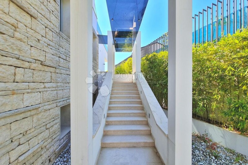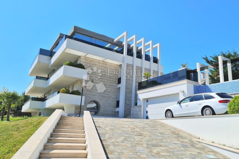 For Sale: Luxury Villa in Ičići! This is a stunning property built in 2014. In the basement of the villa, there is a tavern for socializing, an indoor pool, a sauna, a gym, and other relaxing amenities. The ground floor features a spacious kitchen, a living room of approximately 80 m², and two bedrooms, each with its own bathroom. The first floor houses a master bedroom of 60 m² and two bedrooms with separate bathrooms. Terraces surround the ground floor and the first floor, so every room has its own access to a spacious terrace. This luxurious modern property sits on a 2000 m² plot, with a garage for two cars and an outdoor pool with a sunbathing area. The villa boasts a modern, well-equipped interior, offering an open view of the sea and Kvarner. One of the unique features of this property is the part of the exterior designed in a Japanese style with black marble. This is a unique property that is certainly worth your attention! For more information and to arrange a viewing, please contact us with confidence:.