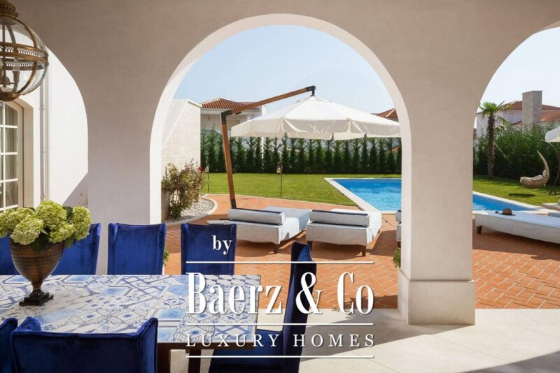 Vabriga, in the west of the Istrian peninsula surrounded by the sea, is located this beautiful detached villa of an impressive 511 m2. The western part of Istria is known for its natural beauty, luxurious, meticulously arranged green areas. It is full of beautiful autochthonous stone houses that are a paradise for the eyes. Part of that is this villa located on 1138 m2 of landscaped and meticulously maintained green area planted with Mediterranean plants, a large 45 m2 swimming pool, a stone sun deck that can be accessed from the bedroom and living room. The villa is designed in such a way that on the ground floor there are two luxurious bedrooms that exude beauty and harmony of shades and are a true paradise for the eyes. Each room with its own bathroom, which is bright, spacious, with built-in first-class Italian ceramics. The minimalist, extremely functional kitchen together with the elegant dining room is separated from the living room. On the first floor, there are four more bedrooms that exude simplicity and elegance, extremely functional, with access to the roof terrace from which there is a view of the green hills from Novigrad to Poreč. Spacious, meticulously decorated bathrooms are an indispensable part of this harmonious space. Due to the favorable climate in Istria, the charms of this villa can be enjoyed all year round. We are at your disposal for more information about this beautiful villa.