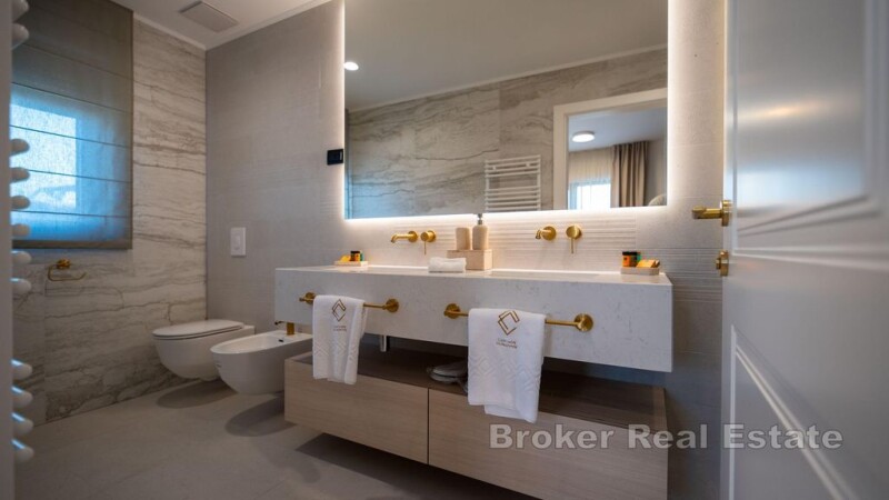 Superb, luxurious new property is located in an extremely attractive location in the immediate vicinity of the center of Dubrovnik, offering a unique combination of elegance, modern design and a spectacular view of the sea and the recognizable old town. This exclusive property represents a unique experience of Mediterranean luxury and comfort. For sale is a complete property with 4 apartments (35m2, 133m2, 142m2 i 266m2). Within the building there is also a garage that offers 12 parking spaces on an area of 400 m2, which enables tenants to park their vehicles safely and comfortably. In the rear part of this property, hidden from view, there are additional facilities that will provide tenants with additional pleasure and relaxation. The beautiful swimming pool allows you to refresh yourself during hot summer days, while the barbecue allows you to enjoy preparing food with family and friends. The spice garden is an oasis of peace and nature, where tenants will be able to enjoy growing and harvesting their own spices. The equipment and materials used in the construction of this building reflect the high standards of modern housing. The quality of construction ensures longevity and reliability, which is extremely important for tenants who want to enjoy a carefree and luxurious lifestyle. The interior of each apartment is decorated to the highest standards, with custom-made furniture that fits the space perfectly and creates an elegant and sophisticated ambience. The building is equipped with an advanced cooling and heating system through ceiling units. This technology enables precise temperature adjustment in each room, which ensures optimal comfort for each tenant, while simultaneously reducing energy consumption. An ideal and rare opportunity to live in the very heart of one of the most beautiful and famous cities on the Adriatic, near all the necessary facilities for life.