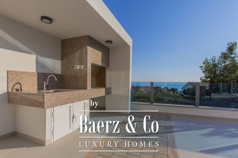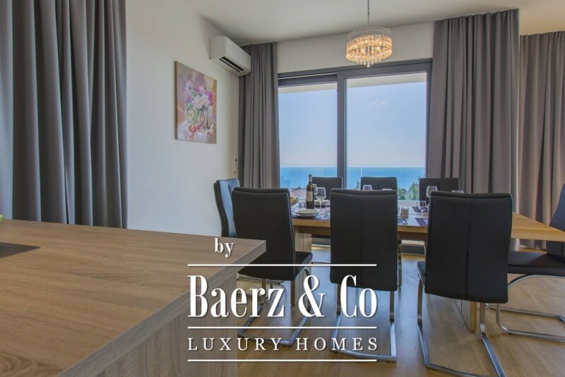 Villa 1 of about 350m2 (basement, ground floor and first floor), and the area of the plot is about 420m2. The villa has an open view of the sea and islands on one side and the mountain Biokovo on the other. The whole complex is carefully designed and fully equipped with all the facilities and equipment needed for housing and many additional benefits. So, the villa has an aesthetically pleasing landscaped garden with its own pool and outdoor fireplace. In the basement there is a large living room with kitchen equipped with all appliances and utensils, bathroom with washing machine, sauna with bathroom, gym, two smaller storage rooms and a boiler room for heating and cooling. A staircase lined with stone leads to the ground floor where the main entrance to the villa and an automated garage for two vehicles. The ground floor of the villa also consists of another, equally large, decorated living room and kitchen with terrace and open views of the sea and islands and a bathroom with shower. Four bedrooms are located on the first floor of the villa and each has its own bathroom and is equipped with the highest quality double beds and mattresses. Three bedrooms have a terrace with a beautiful view. It is important to note that the air conditioning system covers the entire interior of the building, and the bathrooms have underfloor heating. The rooms and living room on the ground floor have oak parquet floors, and the living room and kitchen in the basement have tiled floors. Sunlight reaches the interior throughout the day due to the large glass walls that are installed on the openings of the villa, and if necessary it is possible to darken the room with "sunblock" curtains. The villa is lined with an 8-10 cm thick layer of glass wool under the outer facade for better insulation. The villa has wireless internet access and cable channels on seven TVs (in the living rooms, bedrooms and gym). For all other information on request.