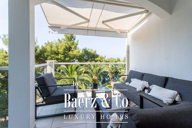 This beautiful holiday villa is located in a unique location, which provides the owner with absolute peace and privacy. The villa extends over four floors - ground floor, two floors and an attic, with a total living area of 411.89 m2. The villa also has 8 parking spaces, and a private garden with a beautiful view of the sea and a large, spacious jacuzzi, with a total area of 103 m2. In the villa itself, there are 7 beautiful one-room apartments, fully equipped, and each of them has a balcony with a beautiful view of the sea. And the great advantage of the real estate itself is a three-room, four-story apartment with a beautiful view of the sea, with a total net area of 143.14 m2, designated as apartment 1, which consists of: on the ground floor from the side part: auxiliary space with a net area of 3.84 m2, on the first floor it consists of three rooms, a bathroom, a hallway, an entrance hall, a storage room and a loggia with a net area of 3.87 m2 (net usable area of 2.90 m2) with a total area of 50.79 m2, on the second floor it consists of a dining room with a living room, a kitchen, a bathroom, vestibule and the associated loggia with a net area of 7.72 m2 (net usable area 5.79 m2) with a total area of 54.62 m2, on the gallery floor of the gallery space with a total area of 33.89 m2. The villa is fenced and provides complete privacy to the future owners. It is a few minutes' walk from the beach, 7 km from Split and 30 km from Split airport. A profitable investment considering that it does not require any additional investment. Each of the apartments, as well as the four-story apartment, has separate floors. Additional information on request.