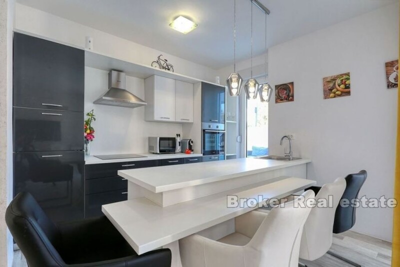 For sale is a modern semi-detached villa located near Zadar on a plot of 127 m2. The villa is a semi-detached building and the year of construction is 2019. It is spread over two superbly equipped floors with a total living space of 136 m2. It is a modern interior with quality furniture. On the first floor there is a spacious kitchen with dining area and living room with access to the outdoor terrace where there is a swimming pool surrounded by outdoor furniture. On the second floor there are three bedrooms and four bathrooms. The property has two parking spaces. It is located near all important facilities: shops, restaurants, beaches and 12 km from the center of Zadar. The villa is 150 meters from the sea and 20 km from Zadar airport. An excellent project that offers many possibilities: it can be used for tourist rental purposes, for a pleasant family vacation but also for housing.