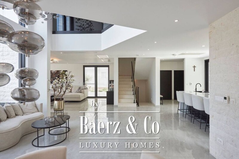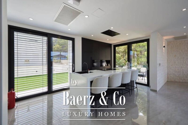 Trogir, in a quiet location with an open view, there is a luxuriously decorated villa. The building is divided into four floors (basement, ground floor, first and second floor), with a total of 340 m2 of living space. Basement - garage, space intended for workshop/gym/office..., bathroom, and tavern; Ground floor – kitchen with dining room, spacious living room, toilet, pantry, corridor; First floor - entrance hall, three bedrooms (two with attached bathrooms); Second floor – master bedroom with attached bathroom and access to the terrace. The terrace, i.e. the walkable roof with a total area of 58 m2, is ideal for gatherings with a wonderful view of the sea. The landscaped yard is completed with a heated swimming pool, a sunbathing area, and a green area. The facility is excellently equipped (Schuco carpentry, heating and cooling with a Daikin heat pump, water underfloor heating,...), and modern and luxuriously decorated. An excellent investment, whether it is a residential solution or an investment in the form of a tourist rental. For all additional information feel free to contact me.