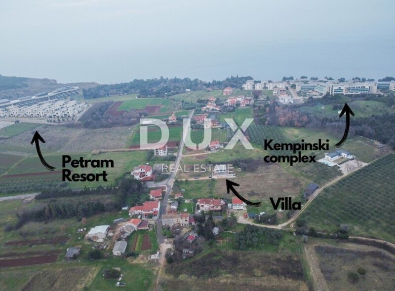 UMAG, SAVUDRIJA - luxury villa with pool near Kempinski and Petram resorts, close to the beach! For sale is a luxury detached villa with pool, located in a prestigious location near Crveni Vrh, one of the most sought-after destinations in Umag. This exclusive property offers spectacular views of untouched nature and even the famous golf house and is located just a few minutes from beautiful beaches. The villa is located in the Valfontane settlement, between the renowned Kempinski hotel complex and the luxurious Petram Resort, in the immediate vicinity of the golf course. It is designed to provide the perfect balance between elegance, comfort and modern luxury. With a total net area of 144 m2, the villa is spread over two floors. On the ground floor there is a spacious living room, kitchen, toilet, storage room, technical room and a covered terrace ideal for enjoying the outdoors. Internal stairs lead to the first floor, where there are three spacious bedrooms, two modern bathrooms, a dressing room and a terrace with a beautiful view. The villa will be equipped with underfloor heating with a heat pump and air conditioning for optimal temperature regulation throughout the year. Parking for two vehicles is provided within the fenced yard. High-quality construction and carefully selected materials guarantee top-notch performance and long-lasting comfort. Buyers are offered the opportunity to customize the interior according to their own wishes, including the choice of finishing surfaces. The villa is being built according to the high-end roh-bau system, without furniture, which allows future owners to decorate it according to their own taste (ceramics, parquet, sanitary ware). The villa is located 600 m from the sea, the drive to the nearest supermarket takes only 3 minutes, and it takes 15 minutes to walk to Petram Resort. This is a rare opportunity to purchase a luxury property in a unique location, ideal for a quiet life by the sea or as an investment for vacation and rental. The house is ready to move into in spring 2025. To arrange a visit to the property, call the agent with confidence - consultation in German possible. ear clients, the agency commission is charged in accordance with the General Business Conditions: www.dux-nekretnine.hr/opci-uvjeti-poslovanja Marko Šutanovac Agent s licencom E- www.dux-opatija.com UMAG, SAVUDRIJA - luxury villa with swimming pool near Kempinski and Petram resorts, close to the beach!.