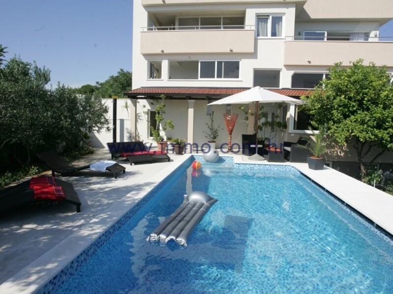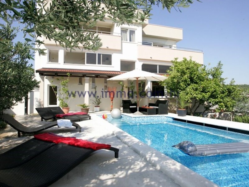 Beautiful villa overlooking the sea for sale on Ciovo, only a few kilometres from Trogir. The villa is located in a quiet area, 400 m from the sea on a slope, offering spectacular views. The house is spread over three floors, comprising one 1-bedroom, and two spacious and bright 2-bedroom apartments. The villa comes air conditioned, fully furnished and equipped to highest standards. The property includes gorgeous outside space with a garden, lawn, swimming pool, sundeck, barbecue, alfresco dining area, and parking for 6 cars. Infrastructure: access road, electricity, water, sewerage system. Additional information about the facility, its exact location and sightseeing is possible after signing a brokerage agreement with the agency that is in accordance with the Data Protection Act and the Real Estate Brokerage Act.