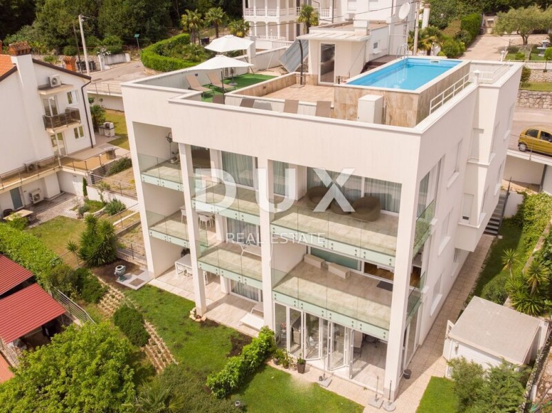 OPATIJA, IČIĆI - 165m2 penthouse with panoramic sea view, swimming pool EXCLUSIVE! Only in Dux! A large penthouse of 165m2 is for sale, of which the outside loggia is 31.70m2 with a beautiful view of the sea. The apartment consists of a hallway that leads to a large living room with a kitchen, a dining room with a bar table and an exit to the terrace, 3 bedrooms, two of which have sliding walls that provide a lot of daylight and beautiful views of the Kvarner Bay. Likewise, from the mentioned rooms you can go out to a balcony with top-quality outdoor furniture (sitting table + deckchairs). The interior is fully furnished with top-quality furniture, a custom-made kitchen, and built-in wardrobes. In the bathrooms, of which there are 3, well-known brand materials were also used. Modern and high-quality parquet is spread throughout the apartment, which gives this floor a great feeling of home. On the roof of the building is the building's communal swimming pool where, in addition to swimming, you can enjoy the panoramic view of absolutely the entire Kvarner and the Učka hills. The pool is regularly maintained and it is possible to add your own deckchairs and umbrellas. The building was built in 2014, by a well-known local builder, thermal insulation on the facade, large open sliding walls, air conditioning in every room, underfloor heating in the bathrooms. Ownership of 3 marked parking spaces, intercom, security doors, electric blinds, large storage room are just some of the advantages of this beautiful property. This apartment is ready to move in and can also be purchased as a perfect investment for a tourist rental. The building is located in a private, extremely high-quality street above Ičići beach. It is a two-minute drive to the sea, or 10 minutes on foot downhill and 15 minutes uphill. The drive to Opatija center takes 8 minutes. Dear clients, the agency commission is charged in accordance with the General Business Conditions www.dux-nekretnine.hr/opci-uvjeti-poslovanja Marko Šutanovac Agent s licencom E- www.dux-opatija.com OPATIJA, IČIĆI - 165m2 penthouse with panoramic sea view, pool.