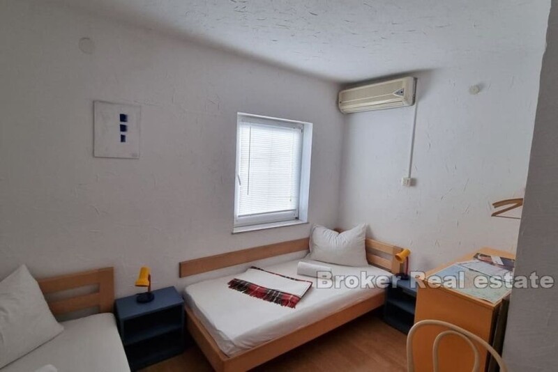 Apartment house in Vodice located five minutes' walk from the beach and the center. The house with a living area of 450 m2 is located on a plot of land of 362 m2 and extends over three floors connected by an external staircase. On the ground floor there is an apartment consisting of two bedrooms, one bathroom, a pantry, a kitchen with a dining room and a covered terrace. On the first floor and the attic there are two two-room apartments with a balcony and two bedrooms with their own bathrooms. At the back of the house there is a storage room in good condition. The property offers the possibility of tourism business, it is located near all necessary facilities for living. The town of Vodice, which got its name because of its abundant drinking water, is a colorful tourist spot located right next to the sea. In the center of Vodice there is a large marina with more than 400 berths for boaters, they offer numerous one-day trips to national parks and lakes, they have a beautiful so-called “Blue beach”.