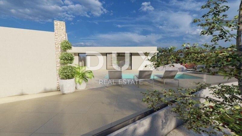 ISTRIA, LABIN - Modernly designed one-story house with swimming pool on the edge of the village On the southeastern coast of Istria, where the green hills meet the sea, where nature and heritage come together, there are two small towns with different but mutually complementary characters - Labin and Rabac. The picturesque town of Labin rises on a hill 320 meters high, only four kilometers from the white pebble beaches in Rabac. Intertwined with rich history and mining that marked this region, Labin, which was declared an independent republic for a short time, is today a fascinating city of contradictions; old and new, history and present, tourism and art. This exceptional property is located on the very edge of the construction zone, in a small settlement not far from all amenities. According to the project, the villa is a single-storey house with an area of 142 m2 with a pool of 28 m2. It is designed to be comfortable and functional, it has three bedrooms and two bathrooms. The villa also has a study that offers various possibilities, such as an office, a gym or a third bedroom. An open and inviting living room, which connects the kitchen, dining room and living room, is located in the center of the house. As for heating, an underfloor heating system will be installed and the "first phase" preparation for solar panels will be installed, and each room will have its own air conditioner. A swimming pool with a sunbathing area, a summer kitchen with a dining area and two parking spaces will be located on the perfectly landscaped garden area of 980 m2. The construction of the villa has begun, and the end of construction is expected in the first half of 2025. The entire house is sold completely finished, without furniture, which allows the new owners to decorate the interior according to their own choice. The mentioned real estate, which in itself has an exceptional and unique shape, offers possibilities for family life, while at the same time it is suitable for tourism. Dear clients, the agency commission is charged in accordance with the General Business Conditions: DUX Labin E- www.dux-istra.com ISTRIA, LABIN - Modernly designed one-story house with a swimming pool on the edge of the village.