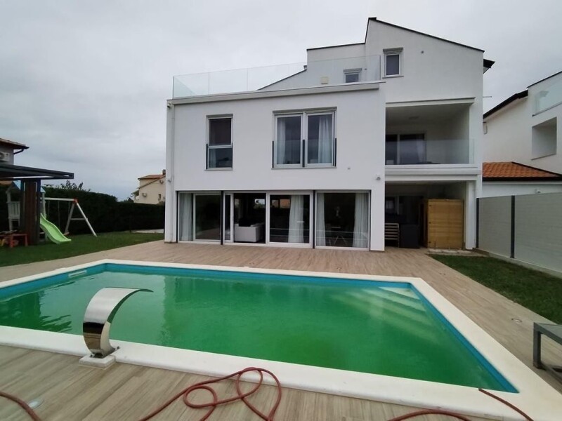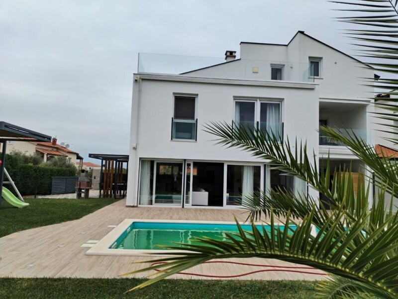 Permit us to introduce a property of remarkable distinction just 5 km from the sea in Porec area. Situated but a few minutes' drive from the heart of Poreč, this luxurious villa offers a retreat of the highest order. Standing proudly upon an 800-square-meter plot, the villa itself spans a generous 265 square meters, unfolding across three levels. Upon entering, one is greeted by a hallway leading to an open space where the kitchen, dining area, and living room are harmoniously combined. From the living room, vast sliding glass doors reveal a seamless transition to the exterior, where a heated pool of 26 square meters beckons, complete with massage jets and a waterfall. Further enhancing this outdoor sanctuary are a sauna and jacuzzi. For the younger members of the household, a playground and trampoline await. On the ground floor, one will also find a bedroom with its own private bathroom, a guest toilet, and a storage room. Ascending the internal staircase to the first floor, one discovers four bedrooms, two bathrooms, and two terraces. At the pinnacle of the home, the second floor boasts two grand terraces offering distant glimpses of the sea, alongside a spacious bedroom with its own ensuite. The villa is equipped with underfloor central heating throughout, while cooling is provided by heat pumps and fan coils. In the living room, a wood-burning fireplace offers an additional source of warmth, lending a cozy charm to the space. Outside, the grounds are graced with a boiler room, storage facilities, and ample parking for six vehicles. Fully furnished and categorized, this villa stands as a peerless investment for those seeking to enter the realm of luxury tourism. Ref: RE-U-33702Overall additional expenses borne by the Buyer of real estate in Croatia are around 7% of property cost in total, which includes: property transfer tax (3% of property value), agency/brokerage commission (3%+VAT on commission), advocate fee (cca 1%), notary fee, court registration fee and official certified translation expenses. Agency/brokerage agreement is signed prior to visiting properties.