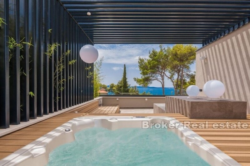 Stunning modern villa located in a prestigious tourist location, just 4 kilometers from the vibrant heart of Zadar, a renowned center of urban tourism in Dalmatia. This exceptional property boasts proximity to beautiful gravel beaches, abundant recreational and sports facilities, all just 900 meters from its doorstep. Elegance abounds in the living space of 453 square meters spread across the ground floor and the first floor of the villa. It features 5 generously proportioned bedrooms, each adorned with a wardrobe, along with 4 separate toilets and 5 luxurious en-suite bathrooms, two of which feature cozy bathtubs, while three offer invigorating showers. The modern kitchen seamlessly integrates with the dining area, living room, and charming tavern that can accommodate up to 10 guests, complemented by a comfortable study for moments of contemplation. As a special pleasure, the villa offers a fully equipped fitness room and rejuvenating sauna and jacuzzi, ensuring unparalleled relaxation. Situated within a meticulously landscaped garden is an enticing 48-square-meter pool, enhanced with heating and cooling nozzles, surrounded by inviting loungers. Surrounded by protective walls, the property guarantees absolute privacy, providing a sanctuary for those who cherish the Mediterranean way of life without compromising on luxury, comfort, or quality. This exceptional residence represents an unparalleled opportunity for discerning individuals seeking the epitome of refined living amidst the allure of the Dalmatian coastal splendor.
