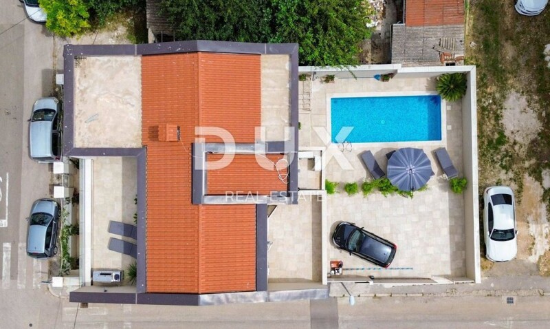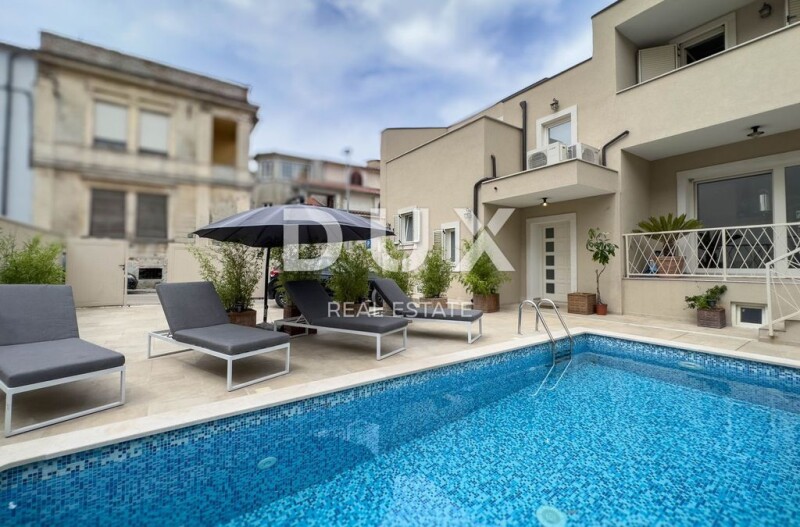 ISTRIA, PULA - Stone villa with sea view We proudly present this high-quality and excellently maintained private Austro-Hungarian stone villa located in one of the most sought-after and luxurious parts of the city of Pula. It is a family villa consisting of a total of two floors, which is located in one of the most sought-after locations in the city. The villa has always been used exclusively for the private needs of the family, and it offers the new owners a variety of options from long-term rental, tourist rental with a secure return on investment. From the beginning of construction, the highest quality materials were used, it was furnished with style and the goal of maximum comfort, which befits a luxury villa. The owners maintain the house in an extremely neat and high-quality way, so it is ready for moving in or renting out for tourist purposes. Come with us to this rare and valuable opportunity. DESCRIPTION OF THE PROPERTY: It is a villa consisting of a total of 350m2 of living space, every square meter of the house has been used to the maximum in order to ensure maximum comfort and for each room to fulfill its intended role. Thus, each apartment has its own privacy and private access. The villa is divided into two floors, ground floor and first floor. On the ground floor, there is a smaller lobby that leads us into the living room designed as an "open space" space without partition walls. Here you can relax with a comfortable living room, which is decorated with a modern wood-burning fireplace. There is also a spacious dining room with enough space for the whole family, as well as a modern and maximally equipped kitchen, slightly separated from the rest of the space in order to leave enough privacy while you prepare your favorite delicacies. What makes the entire space on the ground floor even more pleasant are the glass walls through which enough natural daylight flows into the space, as well as the view and access to the covered summer terrace, the pool and the landscaped environment. In addition to everything mentioned, the ground floor of the villa also has a sauna, a game room with billiards, a small fitness center and a wine cellar. There is also a guest toilet. An open internal staircase leads to the upper floor of the villa, where there are four spacious bedrooms, each of which has its own bathroom. All bedrooms have access to a larger covered terrace with a wonderful view of the sea, the Brijuni Islands and the sunset. The courtyard of the villa is decorated in the same tone as the villa, with the aim of emphasizing the many native Mediterranean plants. Every part of the garden has been carefully designed to convey the feeling of home, luxury and warmth. The central part is occupied by a heated swimming pool with automatic salt chlorination, next to which there is the already mentioned covered summer terrace, and for unforgettable moments of outdoor cooking there is also a barbecue. You don't have to worry about your tin pets, because there is enough parking space for 3 cars in the garden surrounded by a wall, which can be covered if the future owners wish. ADDITIONAL INFORMATION: * The villa was built from local Istrian stone with the use of modern design solutions and traditional Istrian elements, thanks to which the owners managed to create a unique style of the villa. * Independently of the stone details of the villa, a 10 cm insulating demit facade was installed, as well as quality joinery, which makes the stay in the villa significantly more pleasant. * The property is sold furnished and as such offers everything needed for safe housing for a family or an ideal opportunity for investment and return of investment through tourist rental. *All rooms have air conditioning *Underfloor heating * The property is neat, 1/1, and has all the necessary documentation. The property certainly has tourist potential, which makes it an interesting option for all those who are looking for either a real family villa near the sea and beaches or for all those who are looking for a rare opportunity in the form of a tourist investment. For more information, questions or wish to organize a tour of the villa, feel free to contact us. Dear clients, the agency commission is charged in accordance with the General Business Conditions www.dux-nekretnine.hr/opci-uvjeti-poslovanja DUX Pula E- www.dux-istra.com ISTRIA, PULA - Austro-Hungarian stone villa with sea view.