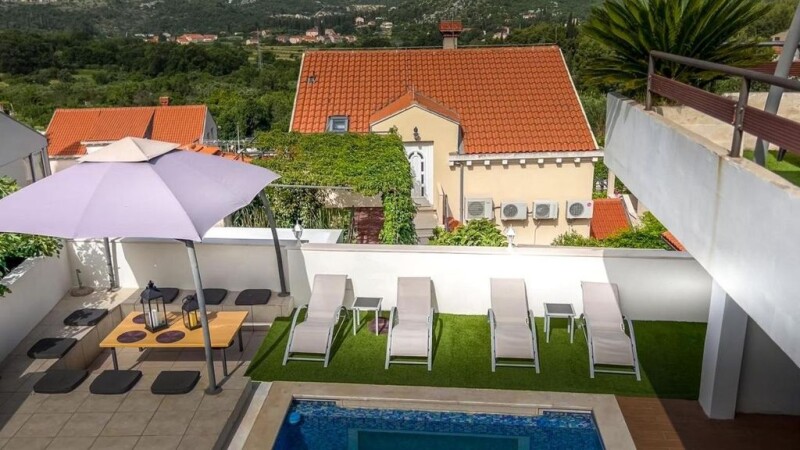 Location: Dubrovnik Built: 2013 Dubrovnik center: 12 km Sea: 2 km Airport distance: 11 km Inside space: 414 m2 Plot size: 817 m2 Bedrooms: 10 Bathrooms: 10 Swimming pool: 26 m2 Parking: 7 Air-conditioner Sauna Cameras Patio Playground Garden.