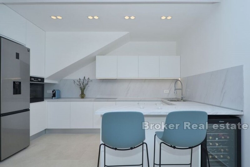 Luxury villa with pool surrounded by untouched nature located in a quiet village 4km away from Split. The villa with a living area of 310 m2 is located on a plot of 3739 m2 which is completely fenced and guarantees complete privacy and peace. On the ground floor there is an open kitchen concept with dining area and living room with access to the terrace which houses a heated pool of 38m2 with sun deck, outdoor shower, outdoor dining area and fireplace which allows for perfect moments in the summer months. On the ground floor there is also a room with a jacuzzi, sauna and shower. An internal staircase leads to the first floor which consists of a separate bathroom with shower, toilet, laundry room and four bedrooms with attached bathrooms, two of which have access to the terrace which offers a magnificent view of nature. The property was built in 2021, is air conditioned and has underfloor heating. Spacious cultivated garden with automatic overwatering is enriched with children's and sports facilities such as slides, trampoline, space for playing football, basketball … It has six parking spaces. The nearest beach is 3km away, the necessary facilities for living at 500m, while Split airport is 30km away. Attractive offer for lovers of untouched nature, peace and quiet that provides an ideal vacation from the hustle and bustle of the city.