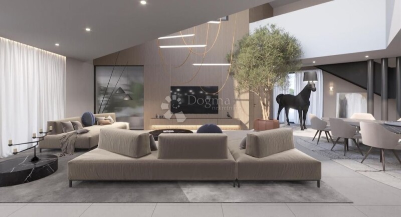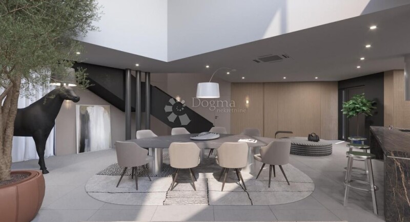 Discover the specialties of our city of Labin, its surroundings and the region, experience attractive experiences and let the wonderful moments ignite your imagination with a handful of activities, sights and cultural heritage and gastronomic offer! This house surrounded by nature is located in a privileged location near the sea, which has privacy and which provides you with privacy and intimacy, which makes it an ideal opportunity to escape from the crowds. The gross area of the house is approximately 500m2 and there is a possibility of agreement on landscaping. The ground floor offers open space kitchen with dining area and living room with plenty of natural light provided by glass walls, then, one bedroom with bathroom, fitness room with sauna, whirlpool and toilet, laundry room also with toilet. Underfloor heating is installed throughout the ground floor via a heat pump. The first floor contains three more bedrooms with bathroom and exit to the terrace with panoramic views that will delight you at first sight but also every next! Glass walls on the first floor will give you the warmth and airiness of the sun in all rooms. All rooms have air conditioning. The pool of 80m2 has heating via a heat pump and is surrounded by a decking-exclusive floor that brings elegance to the terrace around the pool. The house is for sale with the surrounding land with a total area of approximately 6000m2. Explore the charms not only of the house but also of our Istrian peninsula that will not leave you indifferent! For all additional information and / or sightseeing, contact with confidence licensed real estate agents with many years of experience in real estate: LORENA KOGEJ Licensed agent Mob 091 / 738-7200 Phone 052 / 639-276 lorena.kogej@dogma-nekretnine.com SANDRA MILETIĆ Licensed agent Mob 091 / 988-5843 Phone 052 / 639-276 sandra.miletic@dogma-nekretnine.com.