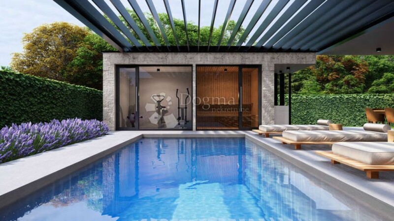 A luxurious two-room apartment in a new building offers a combination of elegance, comfort and modern design in a quiet and beautiful location, only 800m from the sea. Located on the ground floor of a building with only four residential units, it offers privacy and exclusivity. The apartment covers a total area of 77 m2, with a well-designed arrangement of rooms. The entrance hall leads to a spacious living room, dining room and kitchen that are integrated in an open space concept, creating an airy and bright space for socializing and relaxing. A special attraction of this apartment is the exit from the living room to the covered terrace. The quality of the construction is highlighted by high-quality building materials, including aluminum carpentry, air conditioning, underfloor heating and a heat pump, which ensures comfort and a pleasant atmosphere throughout the year. The apartment also comes with two covered parking spaces provided, which is an added practical aspect. Buying this apartment on a turnkey basis allows its future owners to immediately enjoy their new home. This property offers an ideal opportunity for those looking for a high level of luxury, whether for family living or rental for tourist purposes. CHARACTERISTICS OF THE APARTMENT: -top quality construction -PVC carpentry with electric blinds and mosquito nets, triple glass - first-class ceramics, large formats -Hans Grohe sanitary ware - heat pump floor heating, central hot water boiler -air conditioners -2 covered parking spaces - excellent location, close to the sea and marina The price refers to the apartment without furniture and pergola. The same apartment can be bought without a pool and the price is EUR 320,000.00.