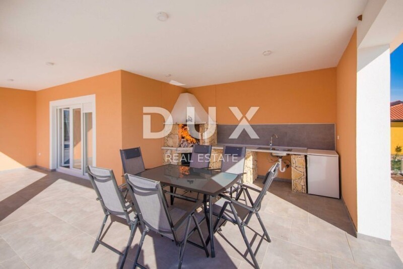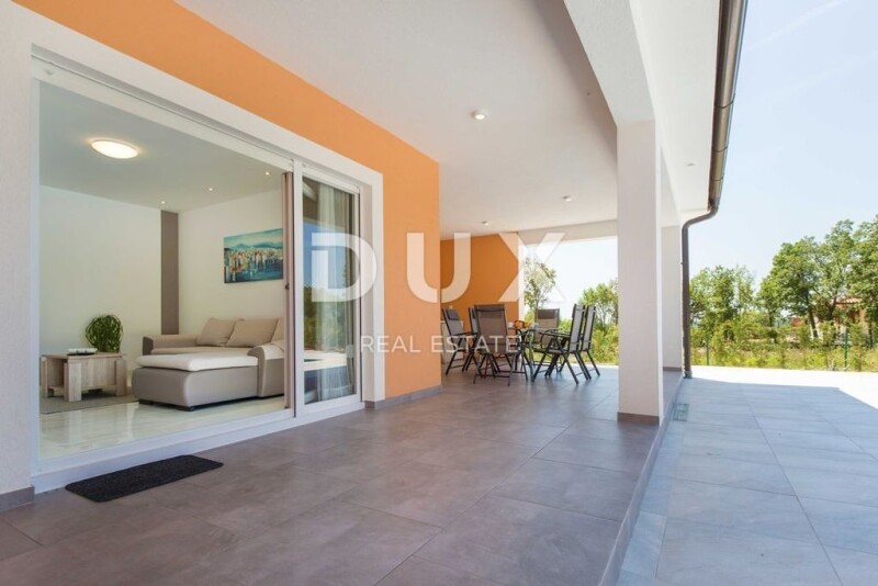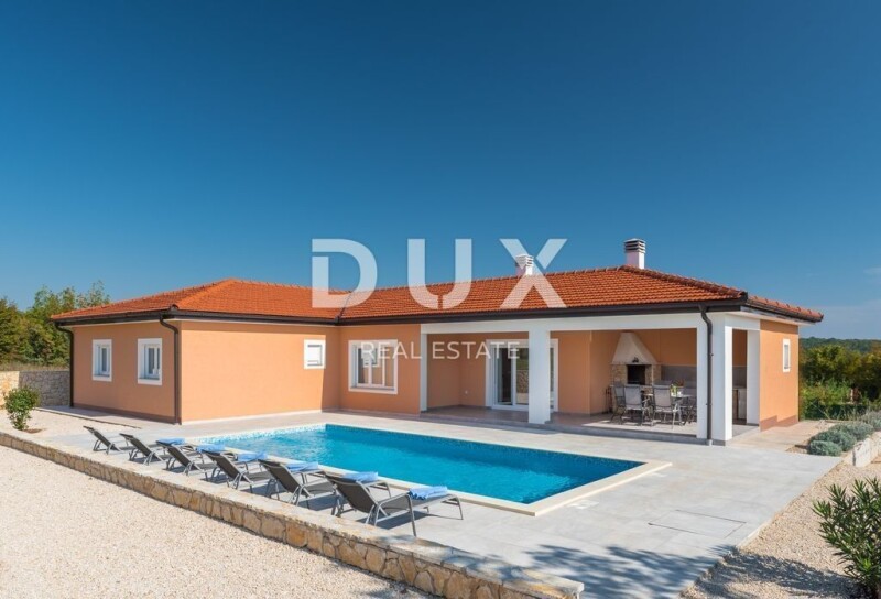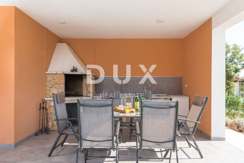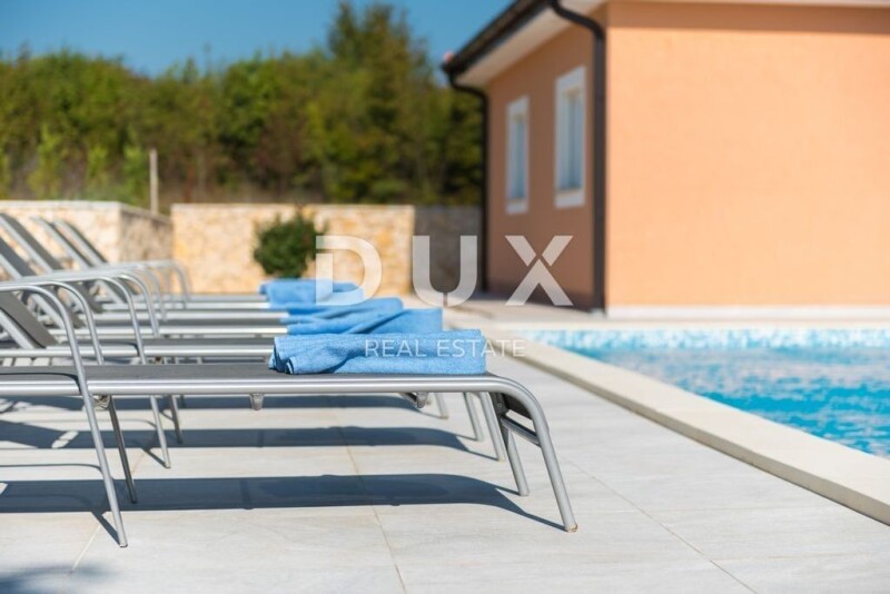 ISTRIA, LABIN - House with a swimming pool and a spacious garden On the southeastern coast of Istria, at the place where the green hills meet the sea, where nature and heritage come together, there are two towns of similar size, but with different but mutually complementary characters - Labin and Rabac. The picturesque town of Labin rises on a hill 320 m high, only five kilometers from the white pebble beaches in Rabac. Intertwined with rich history and mining that marked this region, Labin, which was declared an independent republic for a short time, is today a fascinating city of contradictions; old and new, history and present, tourism and art. Not far from the town of Labin, there is a house for sale with a swimming pool and a spacious garden. The classic design of this one-story house impresses with its simplicity, with a harmonious and functional layout. The ground floor of a total of 185 m² consists of an open space that combines a living room, a dining room and a kitchen from which there is access to a covered terrace, three bedrooms with their own bathrooms, a toilet and a storage room. Next to the house there is a 9 x 4 m salt water pool with a sun deck and a covered summer kitchen with a toilet. The spacious garden in the Mediterranean style is completely fenced and landscaped and offers privacy and peace. The property is fully equipped and furnished and is being sold as such. The excellent micro-location and spatial organization of the interior and exterior of the property is certainly worthy of attention, both because of the possibility of year-round use and peaceful family life, and as an investment for future profit. Dear clients, the agency commission is charged in accordance with the General Terms and Conditions www.dux-nekretnine.hr/opci-uvjeti-poslovanja Iva Zajc Agent s licencom E- www.dux-istra.com ISTRIA, LABIN - House with a swimming pool and a spacious garden.