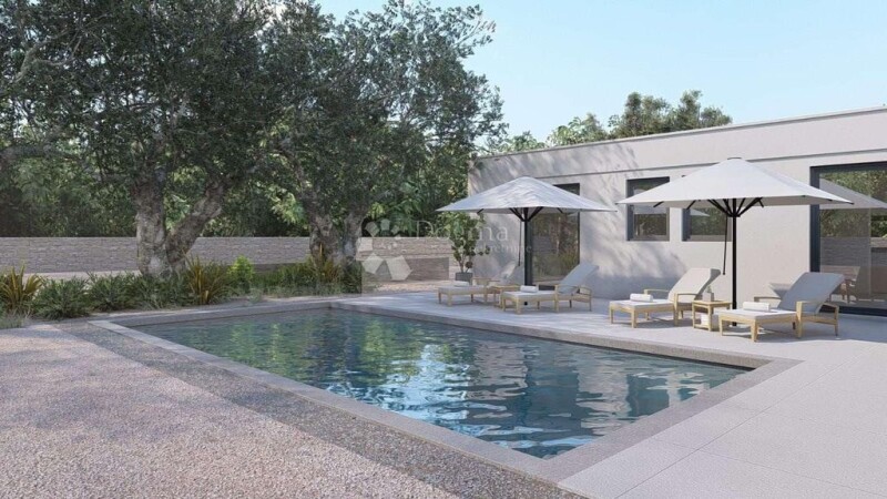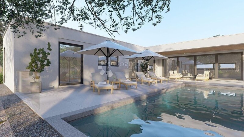 Pristine nature, top-notch food, rich cultural and historical heritage, authentic lifestyle, blue flag beaches are just a part of what this part of the eastern coast of the Istrian peninsula offers you. The town of Labin is located just a few kilometers from the first tourist destination of Rabac. Once a small fishing village where many fishermen sought refuge, today its offer is based on the sea, sun and family tourism. One of the small towns within the city, in the greenery hides a beautiful modern single-story house under construction with a swimming pool and a garage of 36m2. The planned completion of construction is planned for the beginning of 2023. It is located on a spacious 1491m2 plot with a 190m2 ground floor with a terrace and a garage. It consists of three bedrooms with their own bathrooms, a guest toilet, then, the open space trend was used in the creation of the living area, which greatly contributed to the functionality and harmony of the interior, thereby making maximum use of the space and connecting the living room with the dining room and kitchen. Beautiful and spacious glass walls that will provide you with plenty of sunlight lead you to a covered terrace with a summer kitchen and outdoor dining area, a sunbathing area and a swimming pool of up to 45m2. Air conditioning inverters are installed in every room, while floor heating will be installed in the bedrooms and bathrooms. The listed price is for a finished and furnished house. The proximity of all the necessary amenities make this location an excellent choice for an idyllic vacation during the summer months if you want to engage in tourist rentals and thus return the invested funds faster. For any additional information and/or viewing, contact with confidence licensed real estate agents with many years of experience in real estate transactions: LORENA KOGEJ Licensed agent Mobile 091/738-7200 Telephone 052/639-276 lorena.kogej@dogma-nekretnine.com SANDRA MILETIĆ Licensed agent Mobile 091/988-5843 Telephone 052/639-276 sandra.miletic@dogma-nekretnine.com.
