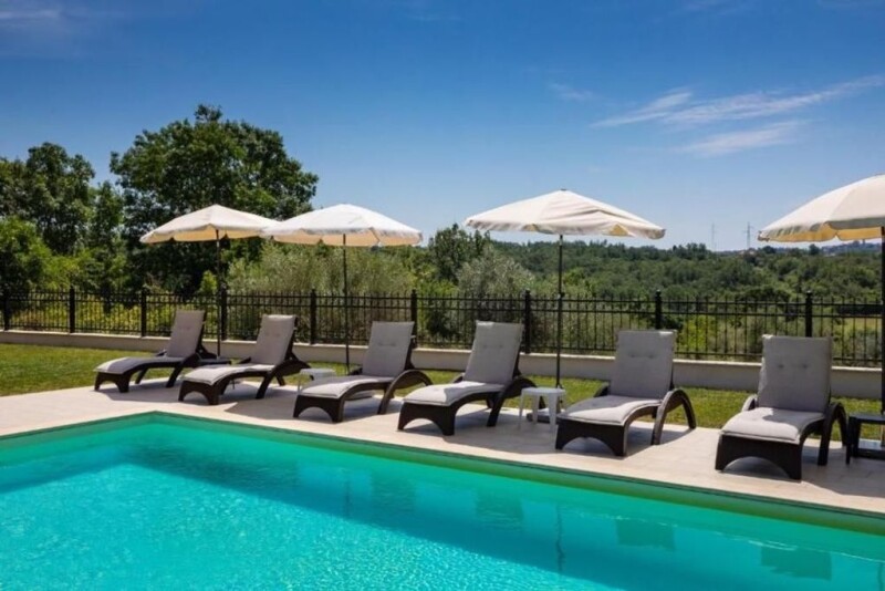 Beautiful and reasonably priced villa in Kaštel, Buje, close to Slovenian border! Total area is 186 sq.m. Land plot is 831 sq.m.. On the ground floor of the villa, there is a smaller entrance that separates the private area from the space for entertainment and socializing. In the private part of the ground floor, there is a guest bathroom, a larger bedroom, storage under the stairs, and a technical room. Further, the hallway leads to a larger open space where a modern and fully equipped kitchen, a comfortable dining area, and a spacious living room are located. This space is adorned with larger glass walls that offer a view of the garden, the pool, and the hills in the distance. Through the same glass walls, access is provided to the external covered terrace by the pool and the courtyard. An internal staircase leads us to the upper floor where an additional 3 bedrooms are situated, each with access to a larger covered terrace, providing an unmatched and unobstructed view of nature, cultivated fields, olive groves, and Buje. Each bedroom has its own bathroom. The villa's courtyard is fully fenced and landscaped in Mediterranean style, with a spacious 26m2 swimming pool and sunbathing area occupying the central part. Next to the pool, there is a covered summer stone kitchen with a barbecue, ideal for entertaining friends and family during the summer months. Adjacent to the summer kitchen is a toilet used during courtyard stays, and there is also a technical room for the pool. The garden is spacious and contains sufficient greenery maintained by an automatic irrigation system. Moreover, the yard is private and hidden from any view. You need not worry about your vehicles, as there is ample parking space for 5 cars on the villa's premises, with 3 of them being covered. Additional advantages: A significant advantage of this villa is that it is located at the end of the construction zone in front of agricultural land full of olive trees, creating a unique atmosphere and a maximum sense of privacy.The villa is sold furnished, as seen in the pictures, meaning future owners only need their personal luggage.The villa is equipped with high-quality fan coils in each room, allowing heating and cooling to be controlled via a smartphone.The villa also has a special water filter, making the water softer and higher quality while preventing limescale issues.In summary, this is a high-quality villa worthy of your attention, with spacious interior rooms, intelligently utilized space, stunning views, and impeccably executed works. This villa represents an ideal opportunity for a genuine, warm, and secure family home or as an option for private investment in tourism. For any additional questions, necessary information, or to schedule a viewing of the villa, feel free to contact us! Ref: RE-U-27926Overall additional expenses borne by the Buyer of real estate in Croatia are around 7% of property cost in total, which includes: property transfer tax (3% of property value), agency/brokerage commission (3%+VAT on commission), advocate fee (cca 1%), notary fee, court registration fee and official certified translation expenses. Agency/brokerage agreement is signed prior to visiting properties.