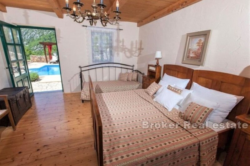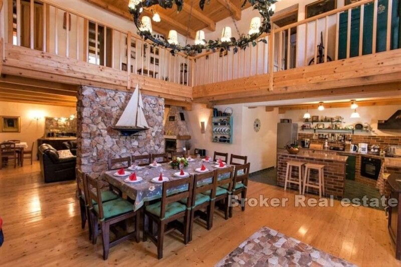 A beautiful stone villa is for sale, located in a small town not far from the first beach of the Crikvenica Riviera. The villa was built in the style of coastal stone houses. The unique combination of nature and tradition continues on the exterior carpentry, which is made of larch and is perfectly integrated into the stone used to clad the villa. The villa has 290 m2 of living space on two floors. On the ground floor there is a kitchen, dining room and living room, sauna, bathroom and one bedroom with a separate bathroom. Upstairs there are five charming bedrooms with en-suite bathrooms. In the beautifully landscaped garden, there is a swimming pool, a sunbed, a covered terrace with a barbecue and an additional building in which there is a bedroom with a bathroom. During the construction and decoration of the villa, attention was paid to every detail and only the highest quality materials were used. The villa is equipped with solar panels, air conditioning in every room and a fireplace in the living room. The combination of quality, tradition and peace makes this villa an exceptional property.