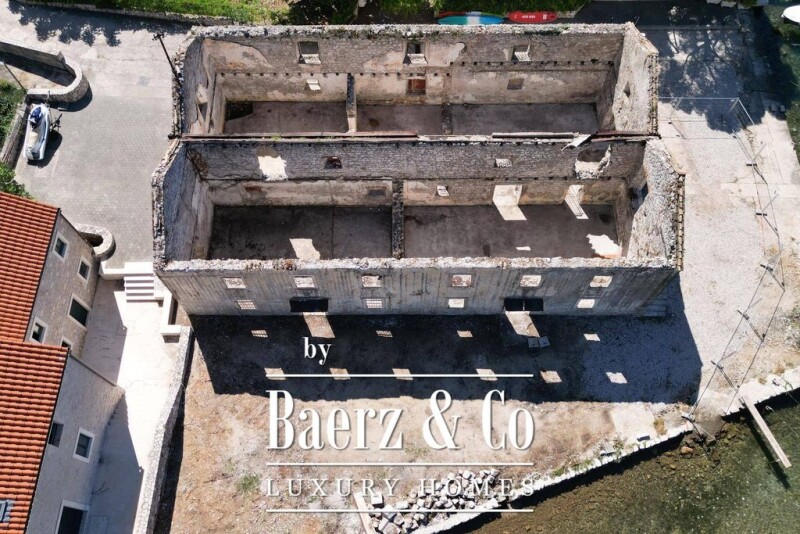 Dubrovnik-surrounding area, two stone buildings from the 19th century, 1100 m2, first row to the sea, together with a yard of 561 m2. Building A was completely renovated, and a reinforced concrete structure was made inside the building covering the ground floor and the first floor, as well as a reinforced structure, all carpentry was changed along with the reconstruction of the load-bearing beams of the roof and the roof itself. The building extends over two floors, the ground floor is 367.13 m2, while the first floor is 326.04 m2, and the total area of the building is 693.17 m2. The facility was originally a mill, and it serves as a dam for the freshwater lake, which passes under and past the facility and flows directly into the sea. Object B requires a complete adaptation, and in its current form it only has load-bearing walls of the structure, and it is necessary to make blankets and a roof. The building in its original form extends over two floors, the ground floor is 264.79 m2, while the first floor is 224.37 m2, and the total area of the building is 489.16 m2. An exceptional example of real estate is in the first row to the sea, in a unique location that, together with moorings for boats, can be an investment project. Additional information on request.