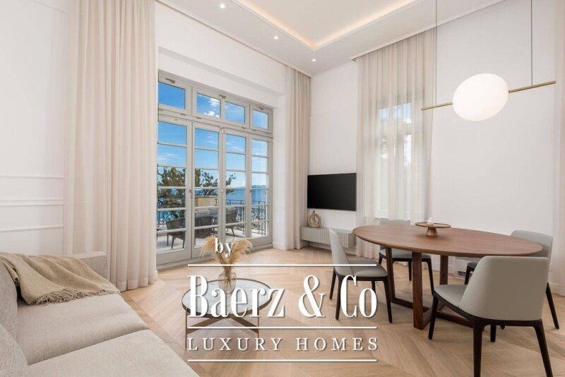 Opatija, in the very heart of the city, in a prestigious location overlooking the sea, we offer you a unique opportunity to buy an elegant apartment of 108,30 m2. This spacious apartment, completely newly renovated, is on the first floor and consists of a hallway, living room with kitchen and dining room, two bathrooms and two bedrooms, and a terrace with an area of 19.35 m2, providing you with unique flexibility and comfort. Basic characteristics: Newly renovated and luxuriously equipped It consists of a hallway, living room with kitchen and dining room, two bathrooms and two bedrooms and a terrace with an area of 19.35 m2. Contemporary design and top quality materials Apartment: Elegance: A spacious and bright apartment with a modern living room, a spacious hallway, a fully equipped kitchen, two bedrooms, two bathrooms and a terrace. An ideal place for relaxation and enjoyment. View: Apartment with a wonderful panoramic view of the city and the same view of the sea. The enchanting view makes every moment special. Extremely functional apartment, perfect for those who value privacy. Equipped with everything you need for a comfortable stay. Additional benefits: Security system Air conditioning High quality floors Close to the sea, public transport, shops and restaurants This luxury apartment in the very center of Opatija, first row to the sea, is an extraordinary investment for those looking for a combination of comfort, style and a central location. For more information or to arrange a viewing, feel free to contact us.