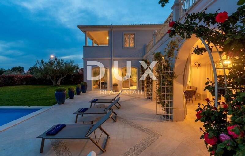 ISTRIA, POREČ - Graceful villa in an extraordinary location Bathed in a pleasant Mediterranean climate, located in the heart of the western Istrian coast, the ancient town of Poreč and its coastline of preserved natural beauty, landscaped parks, pine and oak groves that reach the sea itself, along which clear sea, beaches, bays and islands are spread over area of 139 km² and consists of 58 settlements. With the identity of an urban coastal city, Poreč is a city of culture, sports, entertainment, tourism and genuine hospitality. One of the most attractive cities of Croatian tourism that uniquely combines the natural beauty of Istria, rich cultural and historical heritage and the most modern amenities of a top tourist destination. The harmony of the old town core, which is a cultural monument, with one of the most famous Istrian cultural monuments, the Euphrasian Basilica, which is on the UNESCO World Heritage List, and the most organized and best equipped tourist resorts on the Adriatic forms a mosaic of unforgettable experiences. Poreč is also a city that is much more than a summer destination of sun and sea. Poreč is a city tailored to man. A city where there is a constant impulse for better living conditions and greater progress in various spheres. A city that is a pleasant, safe and well-organized place to live where everyone can find their place, a city without surcharges with high social sensitivity for all generations. Not far from the town of Poreč, on the edge of an attractive place with a panoramic view of the sea and the surrounding area, a graceful villa in an exceptional location is for sale. In addition to the convenient location, the property is characterized by quality construction and spatial organization of the interior, which guarantees long-term satisfaction and quality of living. All materials and equipment are carefully selected to meet the highest quality and functionality requirements. The impressive interior of the villa is generously decorated and offers all imaginable comforts. The impressive net area of 308.84 is spread over two floors. The ground floor consists of a living room and a kitchen with a dining room with access to a covered terrace, two bedrooms, a bathroom with a sauna, a guest toilet, a storage room, a technical room and a lobby with a staircase. The first floor consists of an entrance hall with access to the balcony and two bedrooms with private bathrooms and exits to the terrace. The yard is elegantly, ambiently and horticulturally decorated without the need for exaggeration. It is dominated by a 48 m² swimming pool with a sun deck. The yard is completed by a lounge area covered by a pergola and a 50 m² garage and covered parking spaces. Luxury is imbued to the last detail of the property, which has been meticulously designed, decorated and furnished, and is being sold as such. The micro location, quality of construction, materials and equipment make this property ideal for a peaceful family life, but also a successful tourist rental. Dear clients, the agency commission is charged in accordance with the General Terms and Conditions: www.dux-nekretnine.hr/opci-uvjeti-poslovanja Iva Zajc Agent s licencom E- www.dux-istra.com ISTRIA, POREČ - Graceful villa in an extraordinary location.