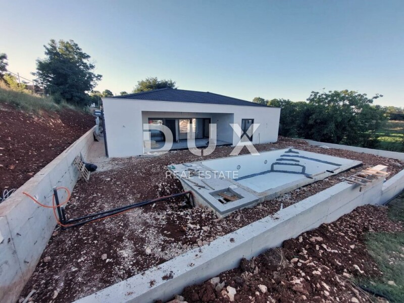ISTRIA, LABIN - Modern new building with swimming pool On the southeastern coast of Istria, at the place where the green hills meet the sea, where nature and heritage come together, there are two towns of similar size, but with different but mutually complementary characters - Labin and Rabac. The picturesque town of Labin rises on a hill 320 m high, only five kilometers from the white pebble beaches in Rabac. Intertwined with rich history and mining that characterized this region, Labin, which was declared an independent republic for a short time, is today a fascinating city of contradictions; old and new, history and present, tourism and art. In the vicinity of the town of Labin, a modern new building with a swimming pool is for sale. The property represents a fusion of modern architecture and natural environment, and the quality of construction and equipment of this prefabricated house guarantees long-term satisfaction and quality of living. Heating/cooling of the house is provided by air conditioners and a floor heating system, and the installation for photovoltaic panels is also prepared. The interior of the house captivates with its simplicity and equipment and excellent spatial organization. It consists of an open concept space that unites the living room, dining room and kitchen with access to the covered terrace that contains the summer kitchen. The floor plan is complemented by three bedrooms with en-suite bathrooms, a guest toilet and a storage room. The yard is horticulturally and environmentally decorated and completely fenced and contains a heated pool of 32 m² with a sun deck and parking spaces with a charging station for electric vehicles. This property in a quiet neighborhood is a perfect opportunity for a comfortable family life as well as an investment in a tourist rental business. Dear clients, the agency commission is charged in accordance with the General Terms and Conditions: www.dux-nekretnine.hr/opci-uvjeti-poslovanja Iva Zajc Agent s licencom E- www.dux-istra.com Tina Širol Agent s licencom E- www.dux-istra.com ISTRIA, LABIN - Modern new building with swimming pool.