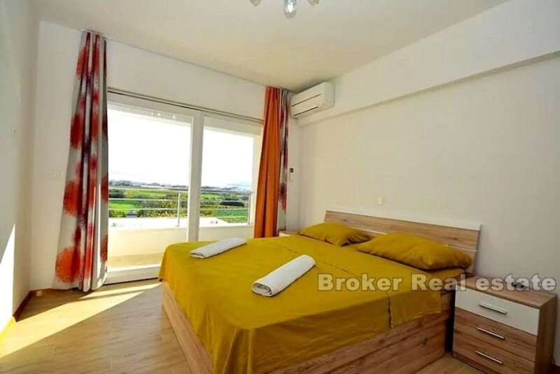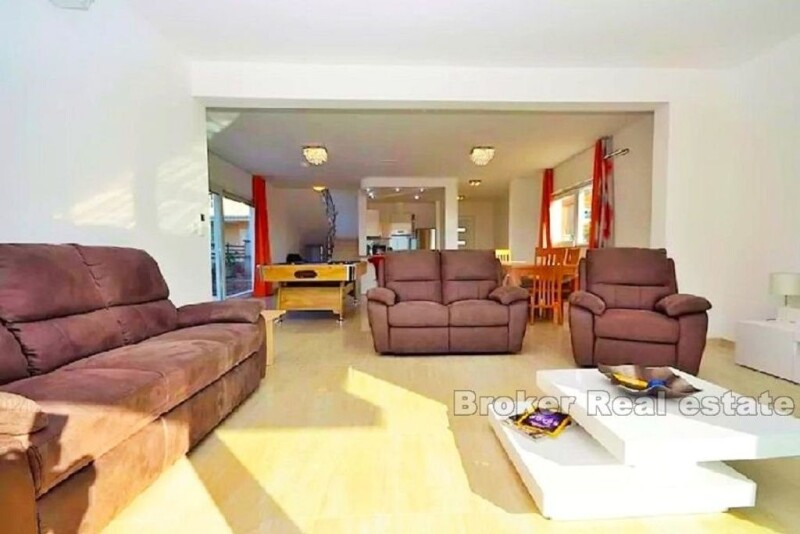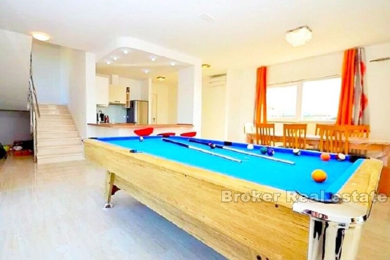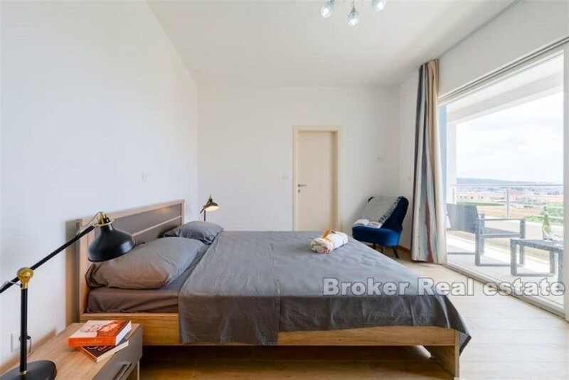 Modern, newly built villa situated in a quiet and tidy area near UNESCO, surrounded by vineyards and olive groves, south-oriented with a fascinating open sea view. The villa consists of three floors: – On the first floor there is a large living room with direct access to the south terrace or the sunbathing area of the large swimming pool. – on the second floor there are three rooms, each with its own bathroom and loggia. – On the third floor there is a large terrace with Jacuzzi, which extends a beautiful view of the Trogir archipelago. The villa is completely finished, furnished, never used.