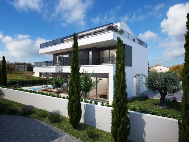 Impressive modern villa in Poreč, 5 km from the sea, under construction. Total surface of this enchanting property is 220 sq.m. Land plot is 550 sq.m. Construction will be completed in 2024. In a wonderful location near the picturesque town of Poreč, discover an enchanting villa that will win you over with its opulent elegance and timeless design. luxurious ground floor space that combines the living room, kitchen and dining room into one spacious open space. In addition, there is a beautiful bedroom, toilet and technical room on the ground floor. On the first floor of this villa there are three elegantly decorated bedrooms, each with its own luxurious bathroom and exit to the terrace. On the second floor of this beautiful villa, there is a wellness area with a sauna and another beautiful bathroom. This villa has set new high standards in comfort and energy efficiency. The floor heating is powered by an ecological heat pump that ensures a comfortable temperature in all rooms. The fireplace area in the living room adds an extra touch of elegance, creating an atmosphere of warmth and comfort. The construction quality of this villa is unparalleled, using only the highest quality materials and carefully selected details. Every aspect of this villa has been carefully crafted to achieve exceptional aesthetics and durability. The price refers to the finished house according to the "turnkey" system. This property is subject to VAT, and the listed price includes VAT. This beautiful villa offers you the opportunity to live your dream in one of the most beautiful locations near Poreč. Ref: RE-U-23217Overall additional expenses borne by the Buyer of real estate in Croatia are around 7% of property cost in total, which includes: property transfer tax (3% of property value), agency/brokerage commission (3%+VAT on commission), advocate fee (cca 1%), notary fee, court registration fee and official certified translation expenses. Agency/brokerage agreement is signed prior to visiting properties.