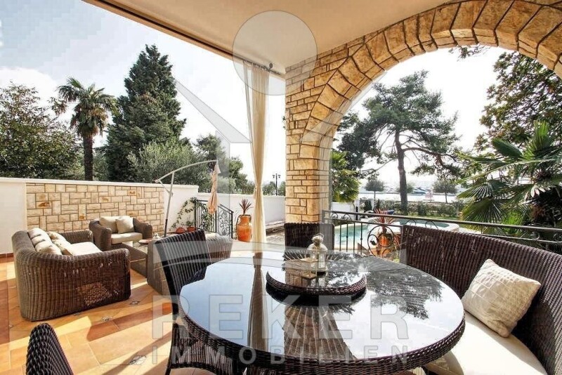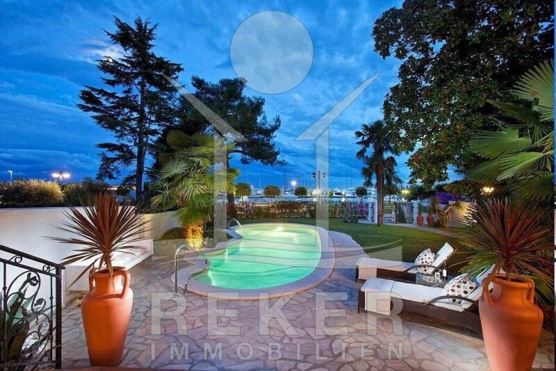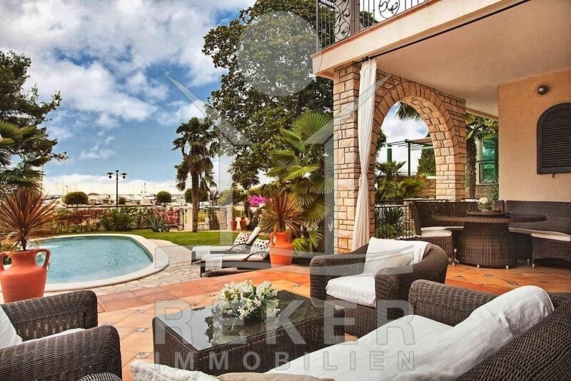 Right on the harbor: Luxury villa with a large pool in the first row. The Mediterranean harbor town of Umag has a population of approximately 14,000 and is located in northern Istria, not far from Trieste in Italy and the Slovenian capital of Ljubljana. Its excellent location and wide range of tourist attractions make it very popular with tourists. The old town is surrounded by beautiful, family-friendly beaches and bays. Narrow, romantic alleys lead to the center, which still exudes medieval charm. Numerous taverns, restaurants, and taverns invite you to enjoy game dishes with homemade pasta, seafood, and, of course, the famous Istrian truffles. Umag is considered the northern gateway to Croatia and was named one of the 10 best summer destinations in the world by National Geographic magazine in 2011. This luxury villa with a Mediterranean garden and a large pool in a prime location right on the harbor in Umag is now available at Reker Immobilien. This exceptionally large, south-facing luxury villa in the first row to the sea speaks for itself. With a total living space of approximately 400 m², the ground floor features a large living and dining room, two kitchens, a study, a bedroom, and two bathrooms. Furthermore, a large hallway with a beautiful staircase leads to the first floor. These are shared by a living room, four bedrooms, two additional bathrooms, and a hallway. On the upper floor of the villa, you'll find a beautiful two-bedroom apartment. The villa boasts four large covered terraces, two of which are on the first floor, and the others, including an uncovered one, are located on the ground floor. There, you'll also find a beautiful, large brick outdoor barbecue with an integrated sink and bench, as well as a uniquely shaped pool with a beautiful waterfall. The beautiful brick surround around the pool and the terraces provide ample space for sun loungers. In addition to the fireplace on the ground floor, the luxury villa is also equipped with air conditioning and additional oil-fired central heating. The floors are made of high-quality materials such as marble, parquet, terracotta, etc., the doors and frames are made of solid oak, and the windows are double-glazed. The villa's courtyard is fully paved and illuminated, and the entire property is fenced. The large gate can be opened and closed by remote control. The garden furniture is included in the purchase price. However, the other interior features pictured are not. https://www.reker-immobilien.de/kroatien/traumhafte-luxus-villa-mit-grossem-mediterranen-garten-pool-meerblick-direkt-am-hafen-umag-kaufen_946?utm_source=ausstattung&utm_medium=txt&utm_campaign=946 ~ We will be happy to provide the energy efficiency certificate for this modern luxury villa for sale. This stunning luxury villa is aimed at investors seeking a truly luxurious property to rent to discerning guests. Due to the villa's special location and high-quality furnishings, a very good return on investment can be achieved through rentals. Of course, the property can also serve as an exclusive second or vacation home for the owner, who is not interested in renting it out and would like to use it exclusively for their own purposes. The purchase price is generally payable in kuna. The buyer's commission is 3% of the agreed purchase price. Upon conclusion of the notarial purchase contract, property transfer tax of 3% may be charged, as well as the costs for drafting the purchase contract and transferring ownership, which amount to 1-2% of the purchase price. Request our non-binding sales exposé for this dream property. We would be happy to advise you here in Germany or, together with our partners in the Reker Immobilien network, locally in Croatia!.